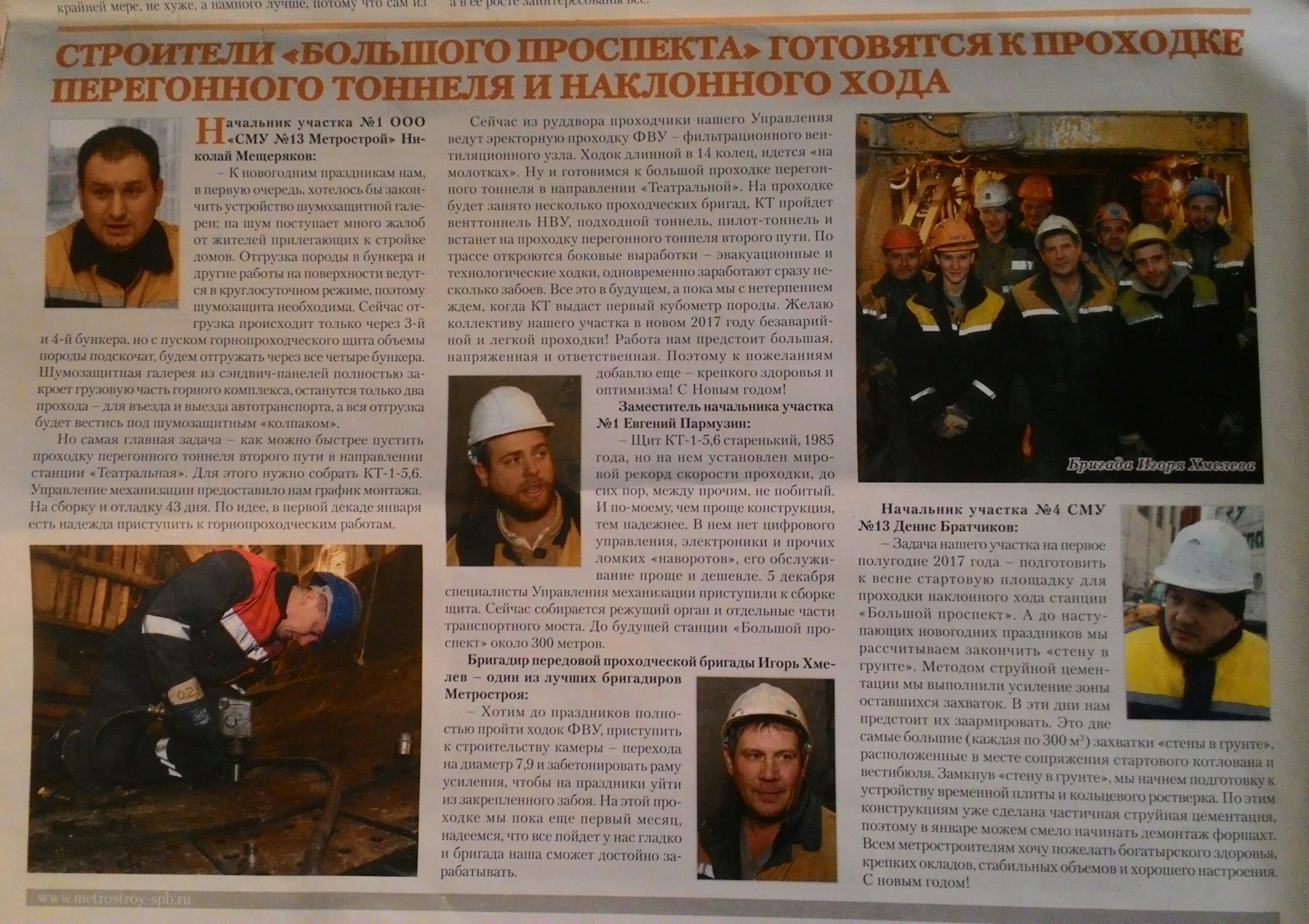 24.01.17 щит КТ-1 5,6 №4 должен будет начать проходку подходного тоннеля к станции Горный институт, а затем и перегонного тоннеля до станции Театральная.