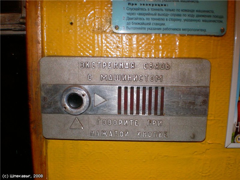 Ну, этот вагон - 1990 г.в., а как известно, УСПМы стали внедрять чуть ли не с первых номерных. Ну, допустим даже с 1985 года. Судя по тому, что было в Е/Емах - по дизайну явно раньше, чем 1990-й год (см. фото). Соответственно, речевая связь с машинистом уже была. Действительно, видимо решили систематизировать возможные проблемы, причём на 10037 кнопки расположены как и номера телефонов экстренных служб: 01, 02, 03.