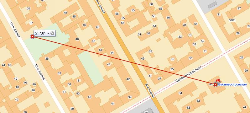 Так второй наклон не построить (сразу за станцией начинаются камеры съезда). Поэтому, второй наклон будет расположен не соосно станции, а под некоторым углом. Примыкание второго наклона к станции будет выполнено, скорее всего, через поперечную камеру при помощи небольшого коридора (а-ля "Приморская" или "Выборгская"). Но, расположив вестибюль в этом месте, некоторые дома попадут в зону возможных осадок и потребуется их расселение. Кроме того, так близко размещать наклон у дома 37 по 10 линии нельзя (необходимо место для оборудования, проезда автотранспорта и прохода людей).
