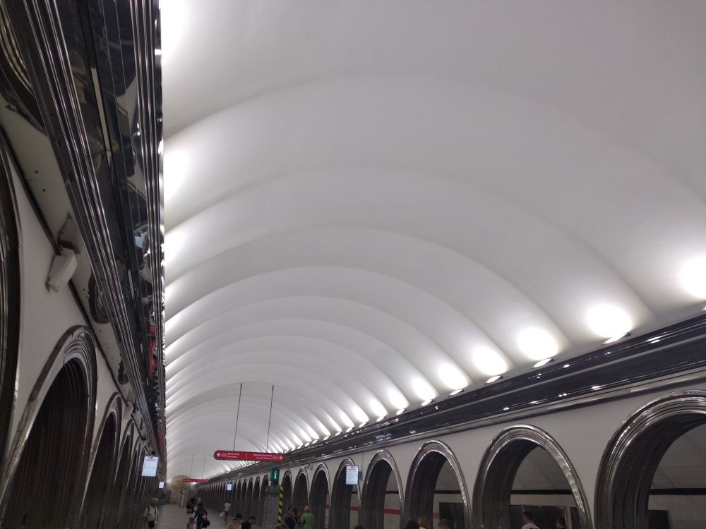 Изначально потолок в вестибюле был как на заводе, затем - как в офисе, теперь же он как в торговом центре: