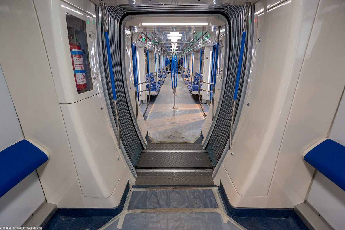 Что касается сквозного прохода, то им в столице не сказать, чтобы активно пользовались. Зайдут в вагоны, встанут и все. Никто через вагоны особо не ходит, так что и у нас они не нужны, как по мне. ДА и когда поезд поворачивает в туннеле это очень странно выглядит, когда предшествующий вагон чуть ли не целиком поворачивает в сторону.