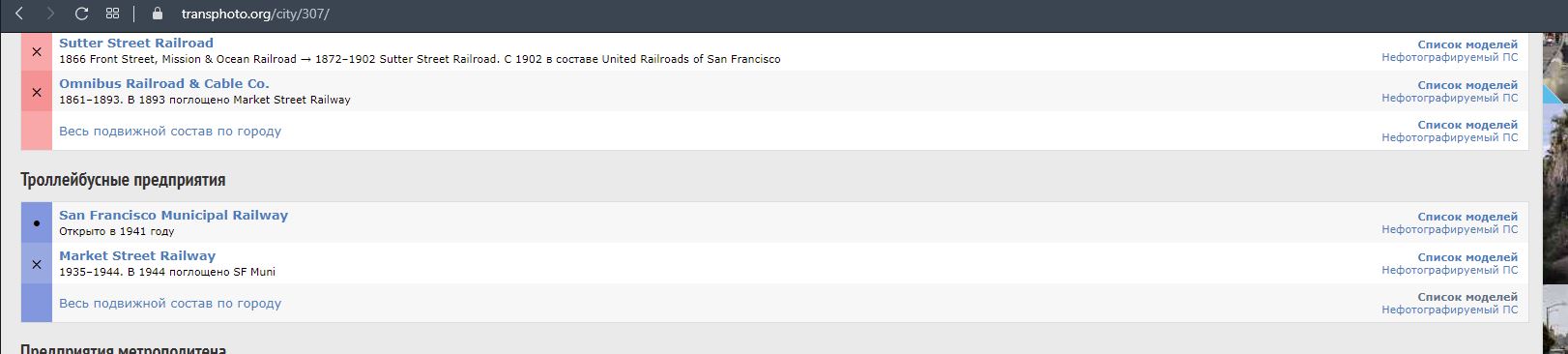 Сан-Франциско - это серьёзно? Был там неделю, видел пару маршрутов канатного трамвая, где негры разворачивают вагон вручную на конечной, а также всякое барахло на паре обычных трамвайных линий. Троллейбусов вот реально нигде не встречал! Может быть, оставили пару музейных маршрутов где-то на окраине...andreev писал(а): Бостон, Дейтон, Сиэтл, Сан-Франциско (Работали Шкоды 14 и 15), Филадельфия