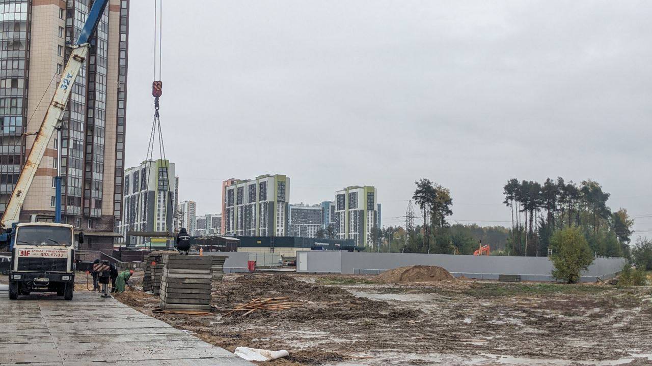 На демонтажном котловане за ст. «Каменка» Невско-Василеостровской линии метро продолжается обустройство площадки.