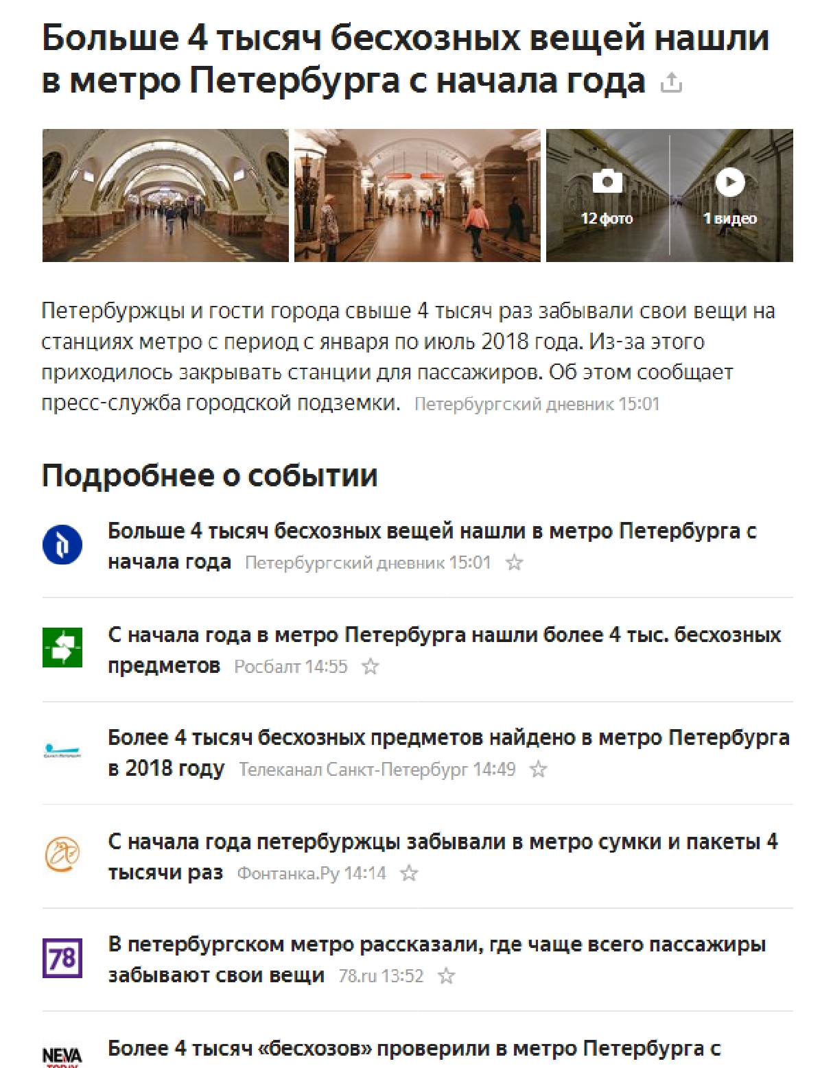 Яндекс поражает тупорылостью новостной ленты. Предоставил сводку о забытых вещах с января по июнь. ДЛЯ ЧЕГО ЭТА ИНФОРМАЦИЯ? К тому же, народ мучается как загнанный зверь от закрытий. Скорее бы самоустранились или их бы устранили те, кто оставил окончательную подпись на разрешение закрывать станции при обнаружении бесхозных вещей.