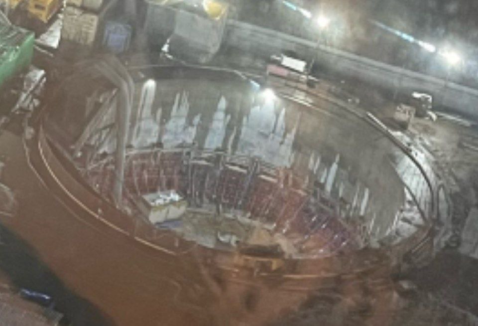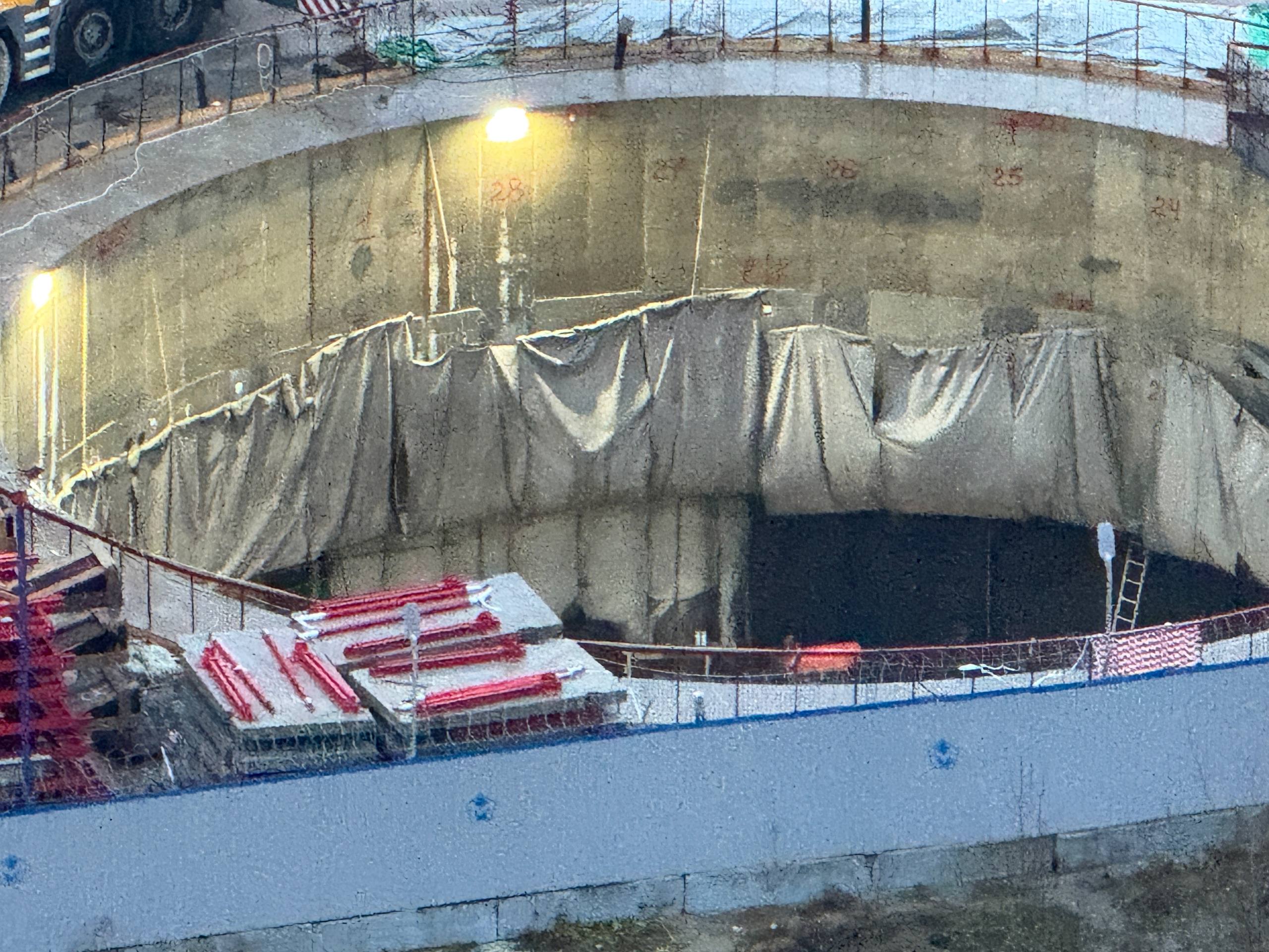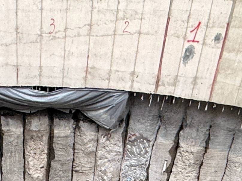 Также, продолжается струйная цементация участка грунта перед входом в демонтажный котлован, всего надо пробурить около 800 скважин и пронагнетать их раствором, чтобы закрепить грунт.