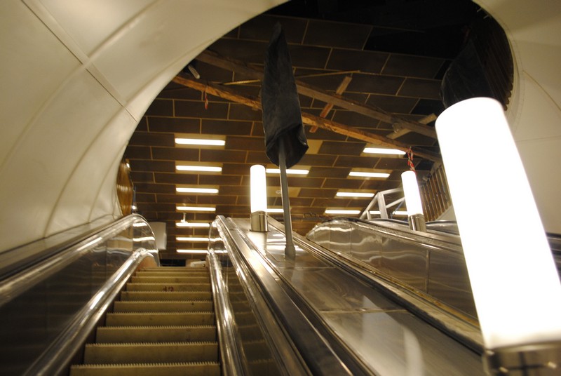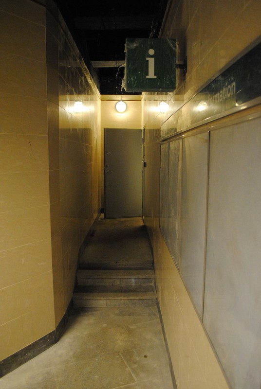 Убрали стенку загородку у входа в коридор к эскалаторам НП2. Но прохода нет висит лента и сидит сотрудник метро. Заменили освещение, светильники теперь как в переходе Пл.Восстания - Маяковская.