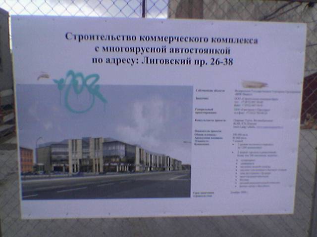 "...Однако в связи с возобновлением проекта высокоскоростного движения между Москвой и Петербургом РЖД решило самостоятельно заняться развитием привлекательного пятна в центре города. В качестве соинвестора привлечена компания ООО "Росрегионпроект девелопмент" -- дочерняя структура института "Ленгипротранс". В октябре-ноябре 2007 года ООО "Росрегионпроект девелопмент" планирует приступить к разработке проекта планировки территории бывшего грузового двора станции Санкт-Петербург-Товарный-Московский. По оценке участников рынка, стоимость строительства на этом участке офисно-развлекательного центра составит $240-265 млн..."