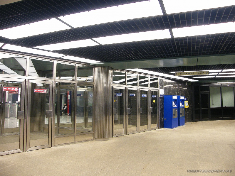 источникДалее, начиная с первой же очереди МПЛ, на станциях появились стеклянные двери с пластмассовыми ручками-кружками: на вход зелёного цвета, на выход – красного. Ставились эти двери в 60-е – 70-е годы. Хорошо помню их ещё 10 (или чуть больше) лет назад на станции "Девяткино". Что интересно, стеклянные двери существовали и существуют поныне наряду с деревянными на станциях 1961 года, как на фото выше.