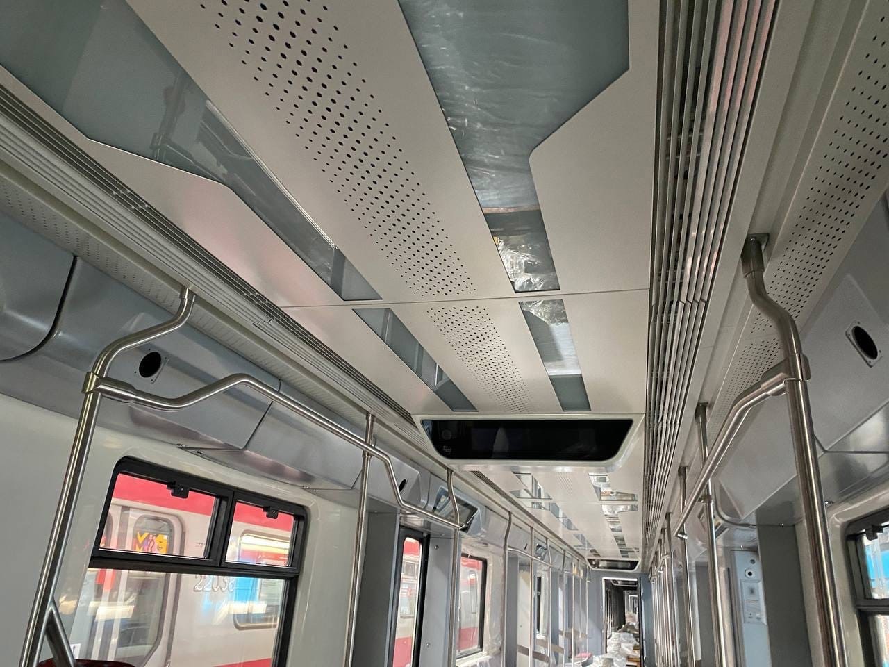 Самые удобные места для стояния, возле дверей, пошли прахом. Интересно, что в торцах. По 6 мест, или по 4. Но могло быть и хуже. Окрас - серо-красное уныние а-ля РЖД.... Сиденья, походу, самый дешман из самого дешмана. Через сколько лет, интересно, метрополитен выдерет наполнитель и просто на пластик приклеит кожу молодого дермантина" как тут, например? https://transphoto.org/photo/13/67/32/1367321.jpgW0LF писал(а): ↑09 сен 2022, 19:23 Фото салона. Источник: https://t.me/subwaymuseum/7336