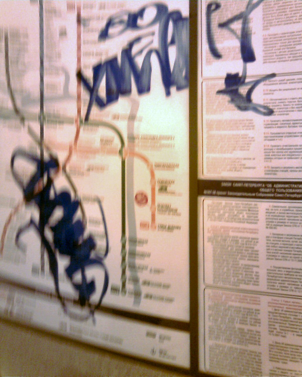 поубивать бы лучше тех, кто свои каракули на мрамор наносит! На Нарвской в очередной раз нанесли некую надпись "musec" на своде НХ и на мраморе в заднем торце платформы второго пути. На своде еще ладно (хотя тоже, уже раз в пятый наносят, каждый раз потом это закрашивать приходится), но мрамор, мрамор!