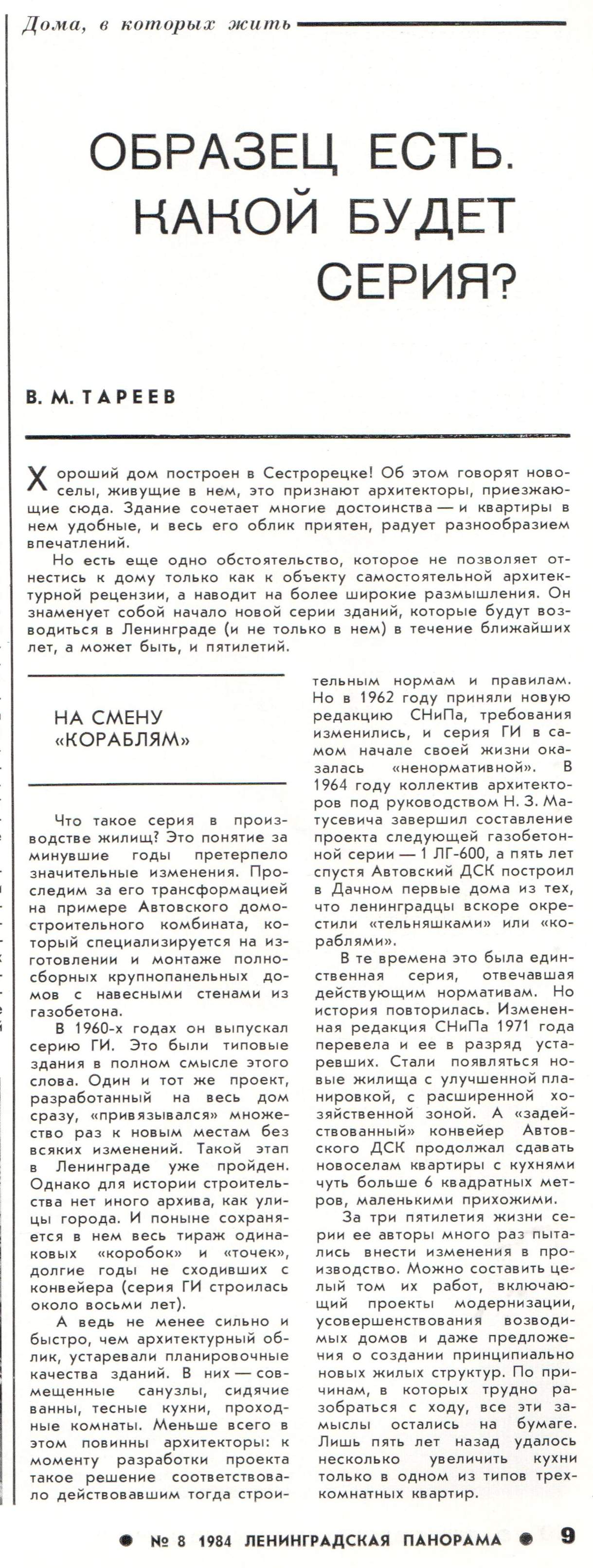 не знал что первый дом этой серии был построен в Сестрорецке. Только интересно в каком году...журнал за 84-й, но думаю там говорится о чуть более раннем времени. Например что кухни в 1-Лг600а увеличились 5 лет назад. т.е. в 79-м...но 1-Лг600а/70 строили с середины 70-х годов...