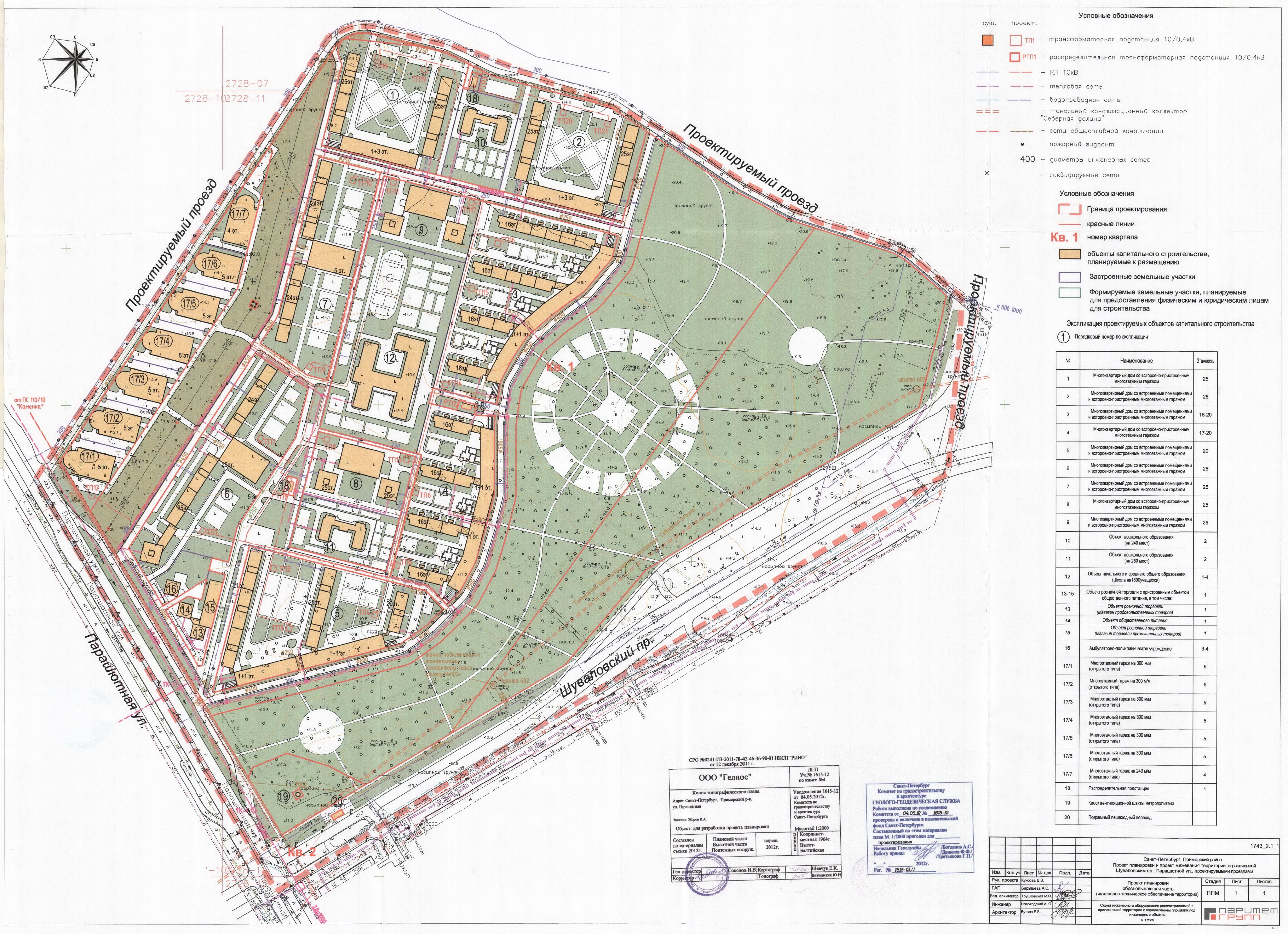 Участок под ВШ №458 и выходы из подземного вестибюля №2 станции "Парашютная" утверждены постановлением Правительства Санкт-Петербурга от 12.08.2014 г. № 698 "Об утверждении проекта планировки с проектом межевания территории, ограниченной Шуваловским пр., Парашютной ул., проектируемыми проездами, в Приморском районе". Схемы из обоснований к проекту планировки территории: