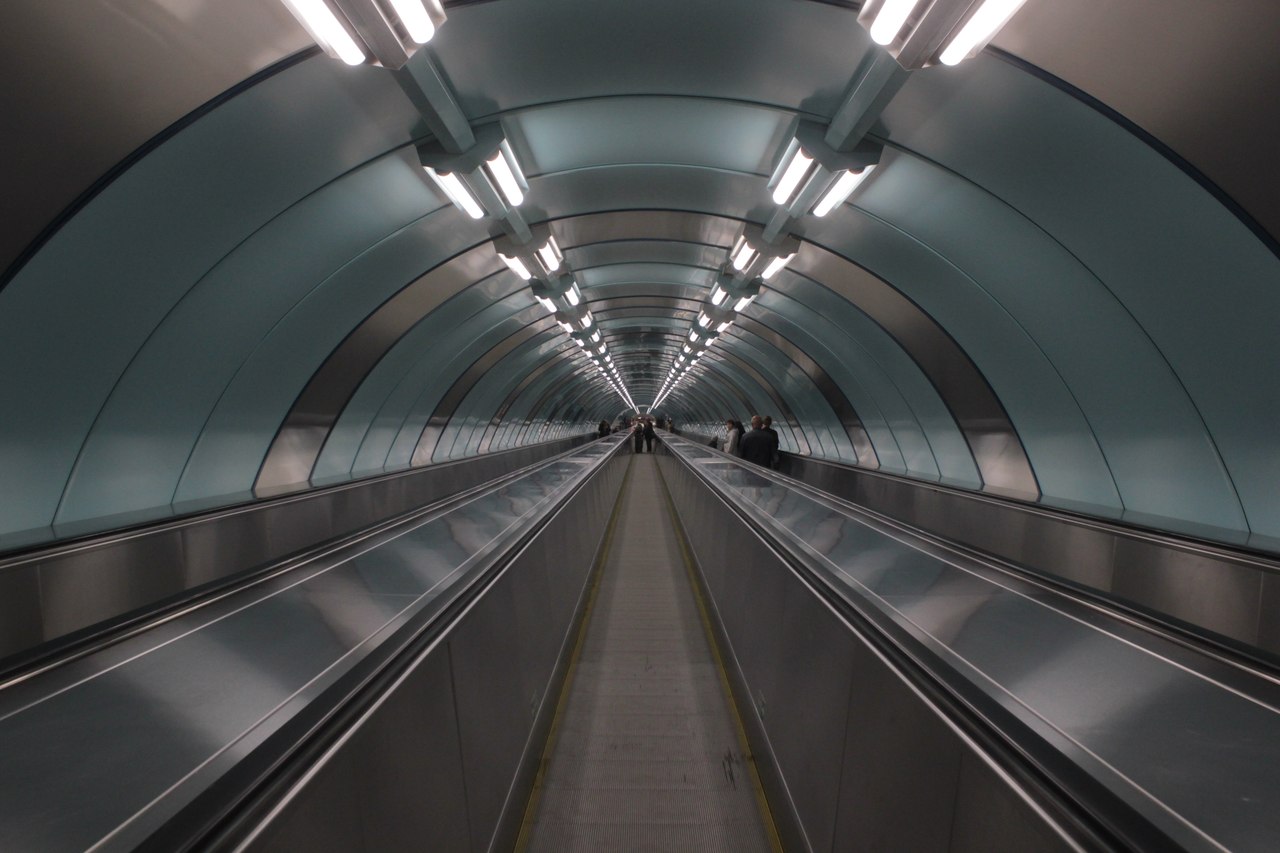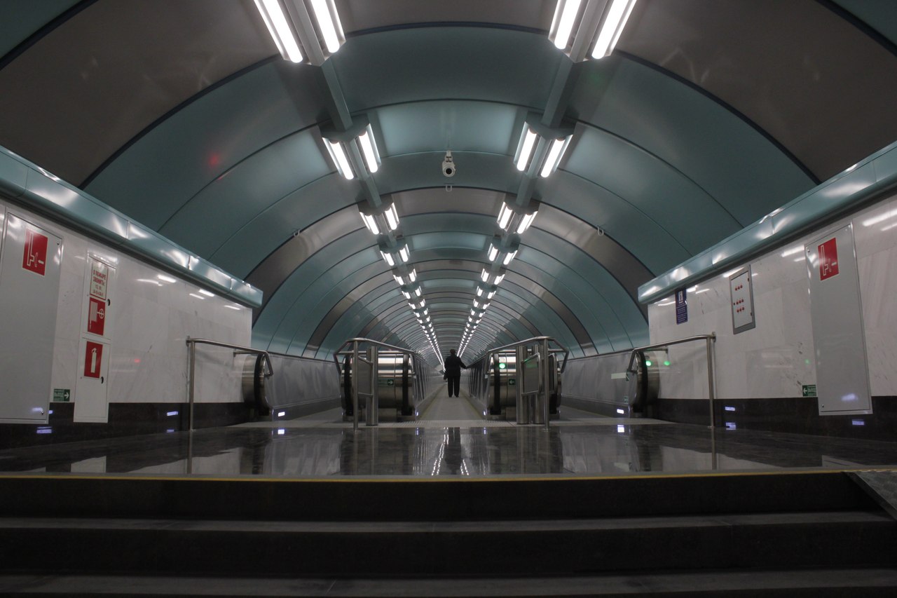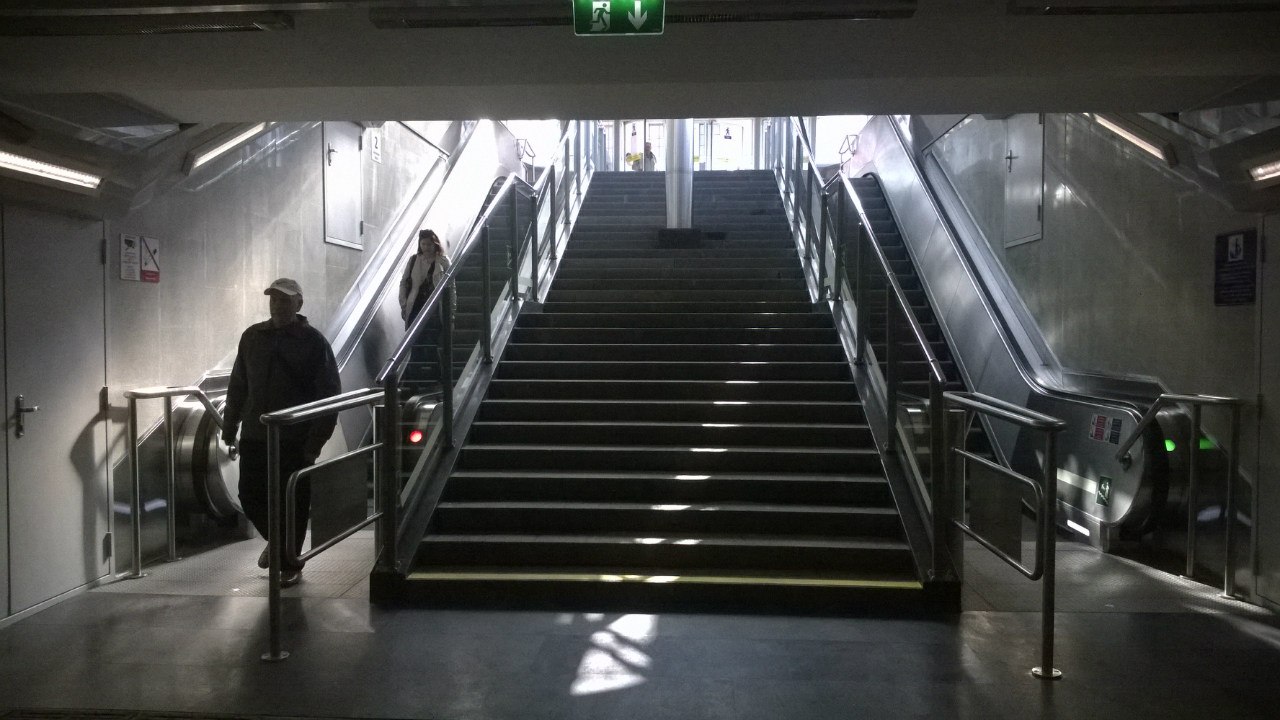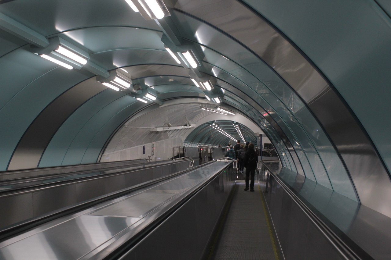 1. Подземное пространство до вестибюля показалось лабиринтом. Имеется 5 лестничных спусков, причём в зависимости от того, в какой попал, длительность путешествия до вестибюля может заметно возрасти. Спуски 1 и 2 крытые, содержат по каменной лестнице и по два эскалатора. Мне повезло зайти через спуск со стороны 1-й линии, а там не так далеко топать в отличие от спуска со стороны Кадетской линии, после которого следует длиннющий переход.