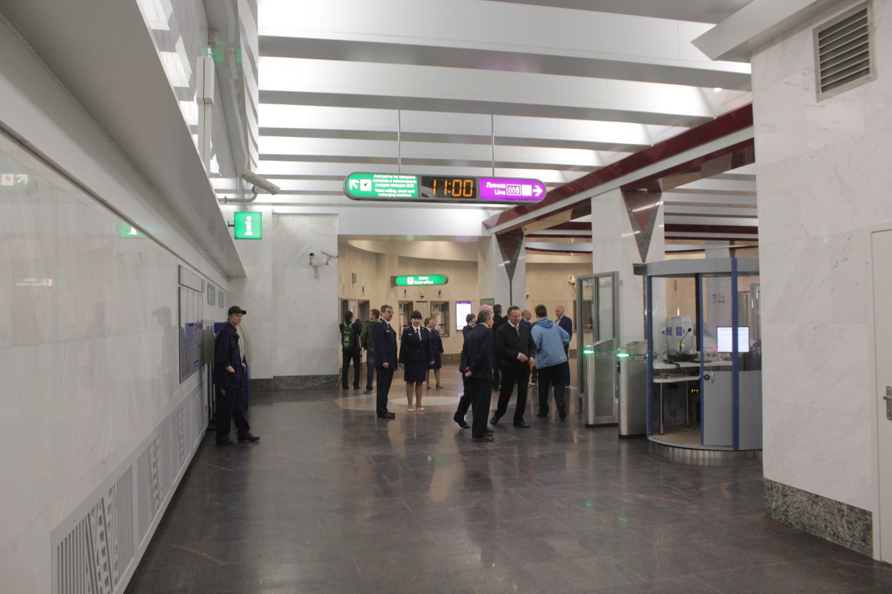 Час прождал на улице. Очень много недовольных граждан было, которым нафиг не нужно было открытие, а которые просто хотели уехать на метро, попутно ругая дезинформаторов в газетах, написавших, что открытие в 9 утра. А так впечатления самые хорошие, очень понравилось все, за исключением мозаики Быстрова