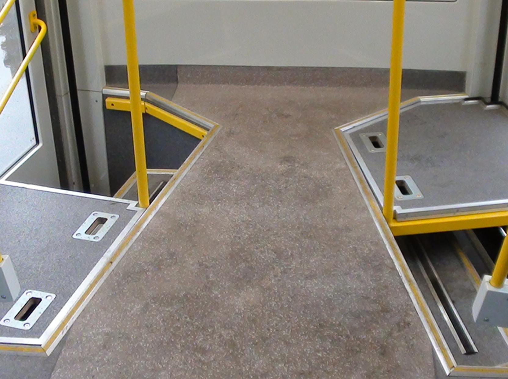 Напомню, накладки установлены из-за экономии места на задней площадке, и вообще из-за безопасности, т.к. есть вариант упасть при повороте в яму.