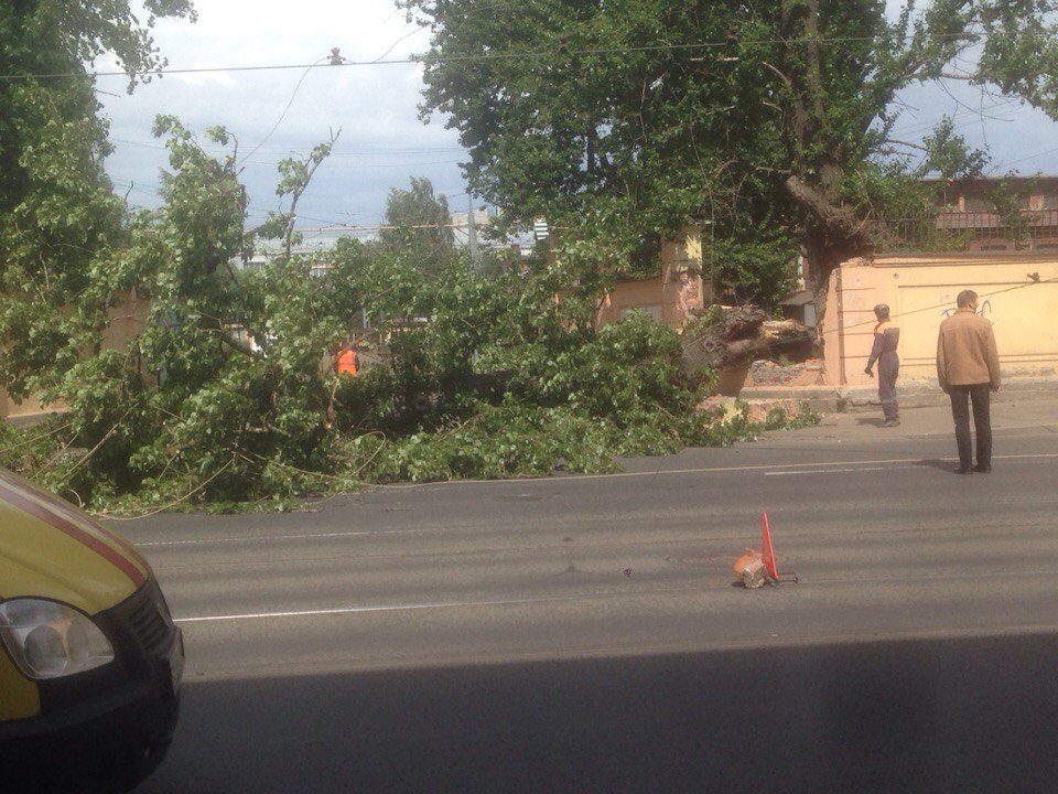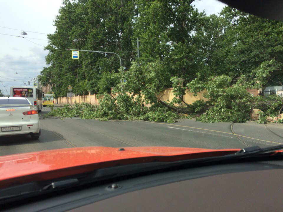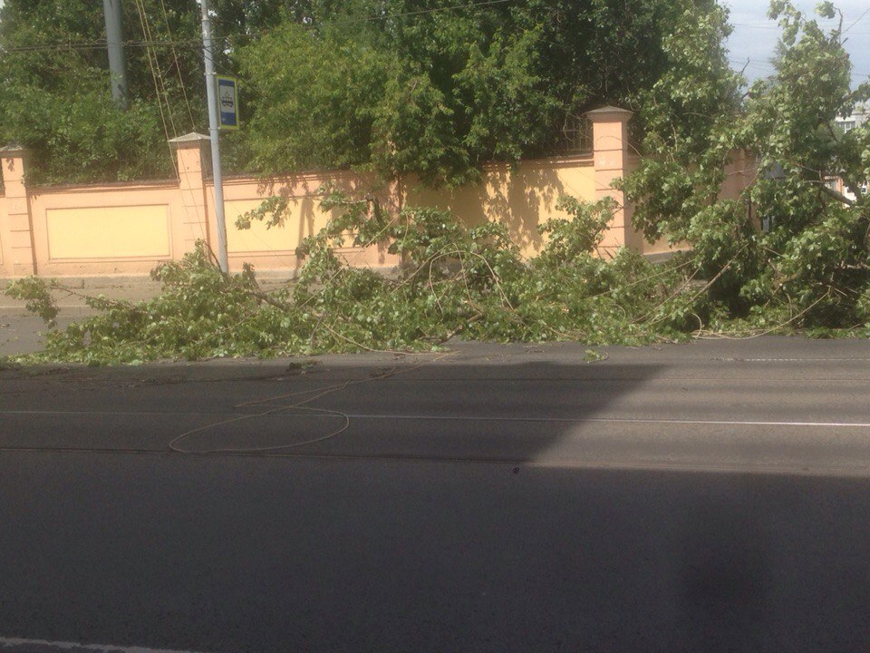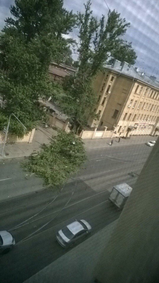 Новость из того же места, но из другой серии. У въезда в Леоновку упало деверо, порвало провода и снесло часть ограды. Трамваи в сторону Приморской встали.