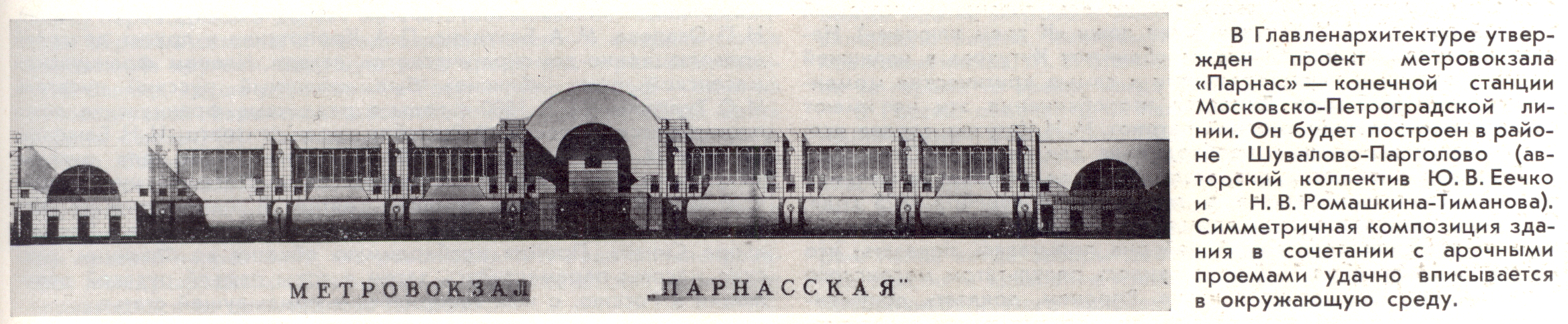 Первоначальный проект станции метро «Парнас[ская]» (1991) на этом форуме проскакивал. Причём дважды, с последовательным повышением качества изображения. Но на них был лишь сам эскиз, без коротенькой заметки. Не так давно я в интернете я нашёл и её, но не в самом лучшем разрешении. А теперь дорвался до закромов библиотеки в Озерках, где журналы Ленинградской Панорамы оказались аж с 1984 по 1992 год