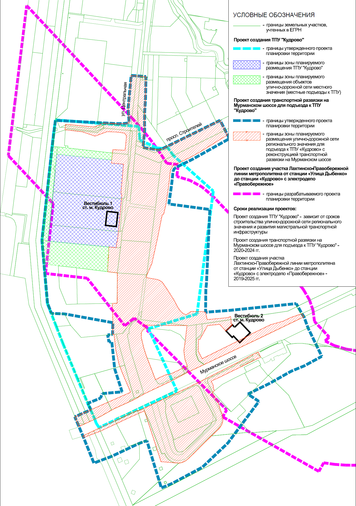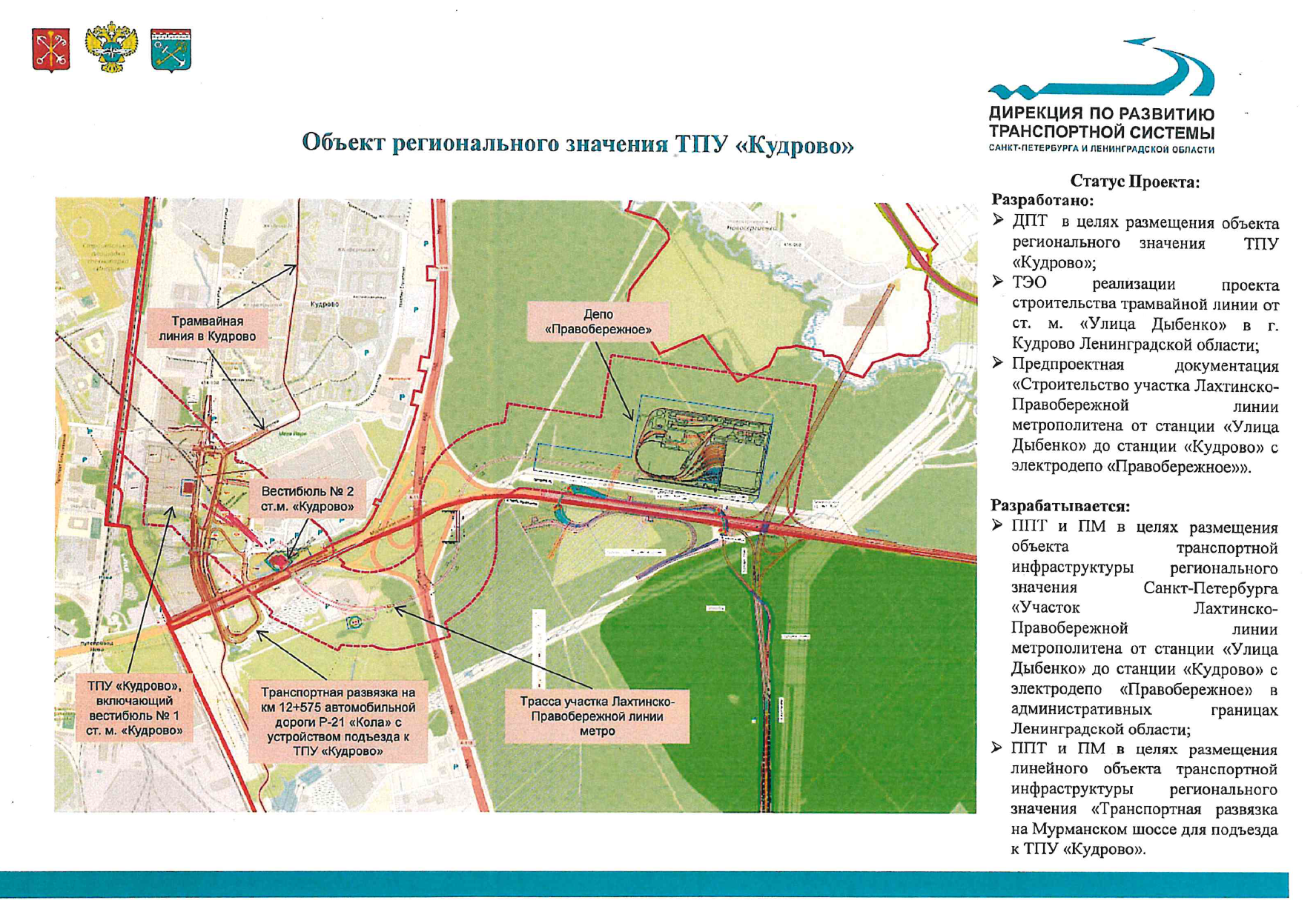 - Количество вестибюлей - 2 (1-наземный, 1 – встроенный в ТПУ «Кудрово»);