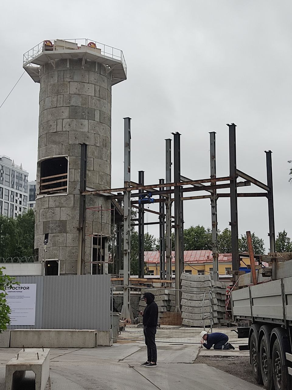 Здесь выработали грунт до проектной глубины и сейчас горнопроходческих работ не ведётся.