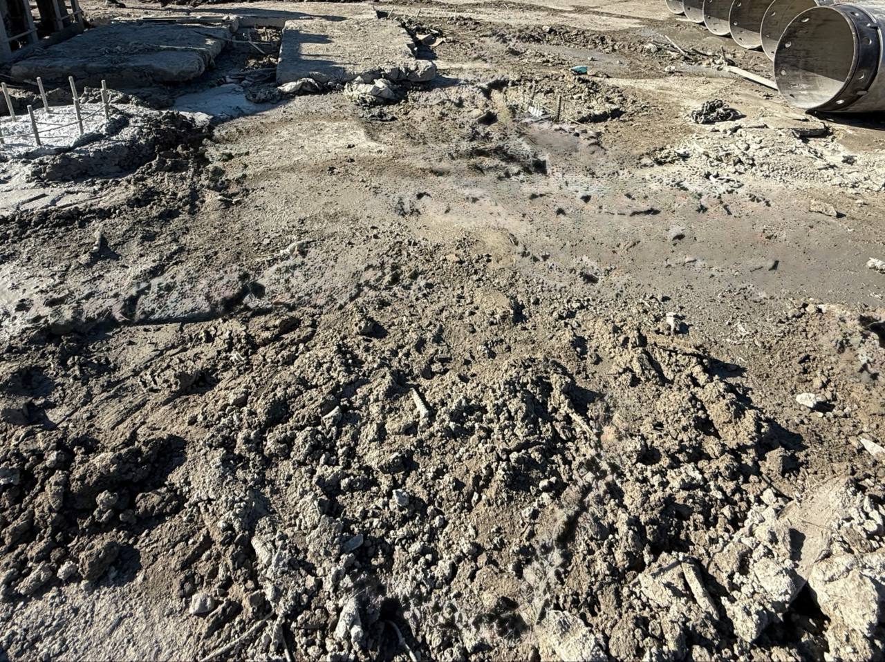После завершения демонтажа строители приступают к устройству ограждающего контура из буросекущих свай по периметру ствола шахты.