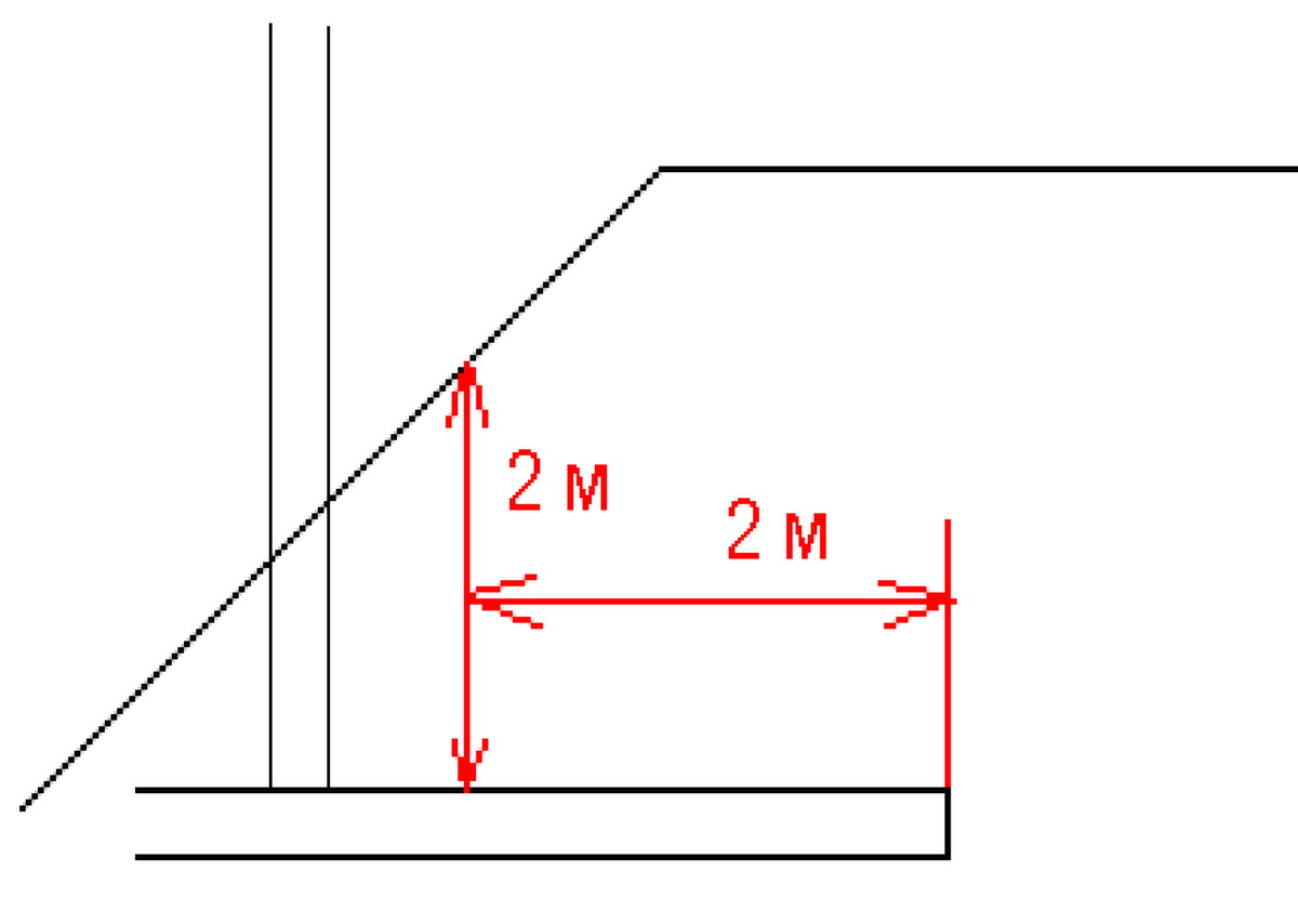 Ширина платформы за глухой стеной 3,4м, под лестницей 2м по высоте на 2м от края платформы: