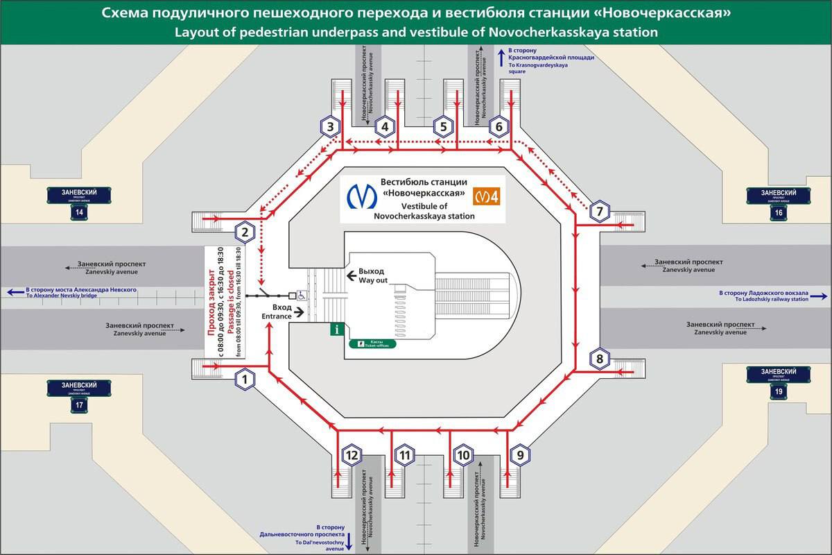 Да, уж... Какой идиот придумал такую схему движения пассажиров? Не один нормальный человек не будет делать по коридорам круг в 300 метров, если для входа в метро достаточно просто перейти Заневский проспект.