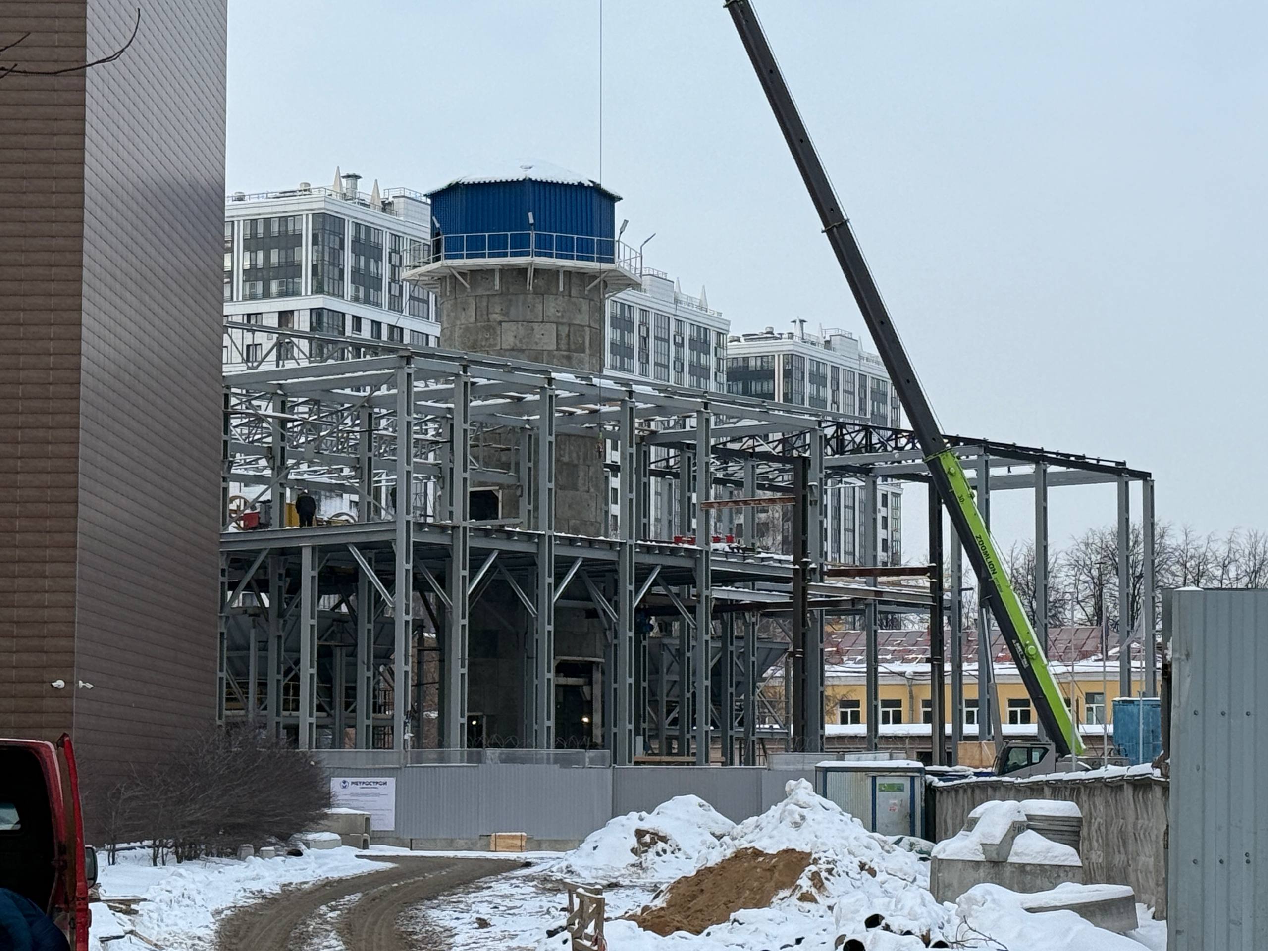 - продолжается монтаж металлоконструкций будущего горного комплекса шахты.