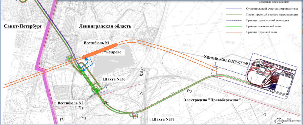 Проект планировки территории "городской части" линии в Кудрово подписан губернатором 27.01.2022.