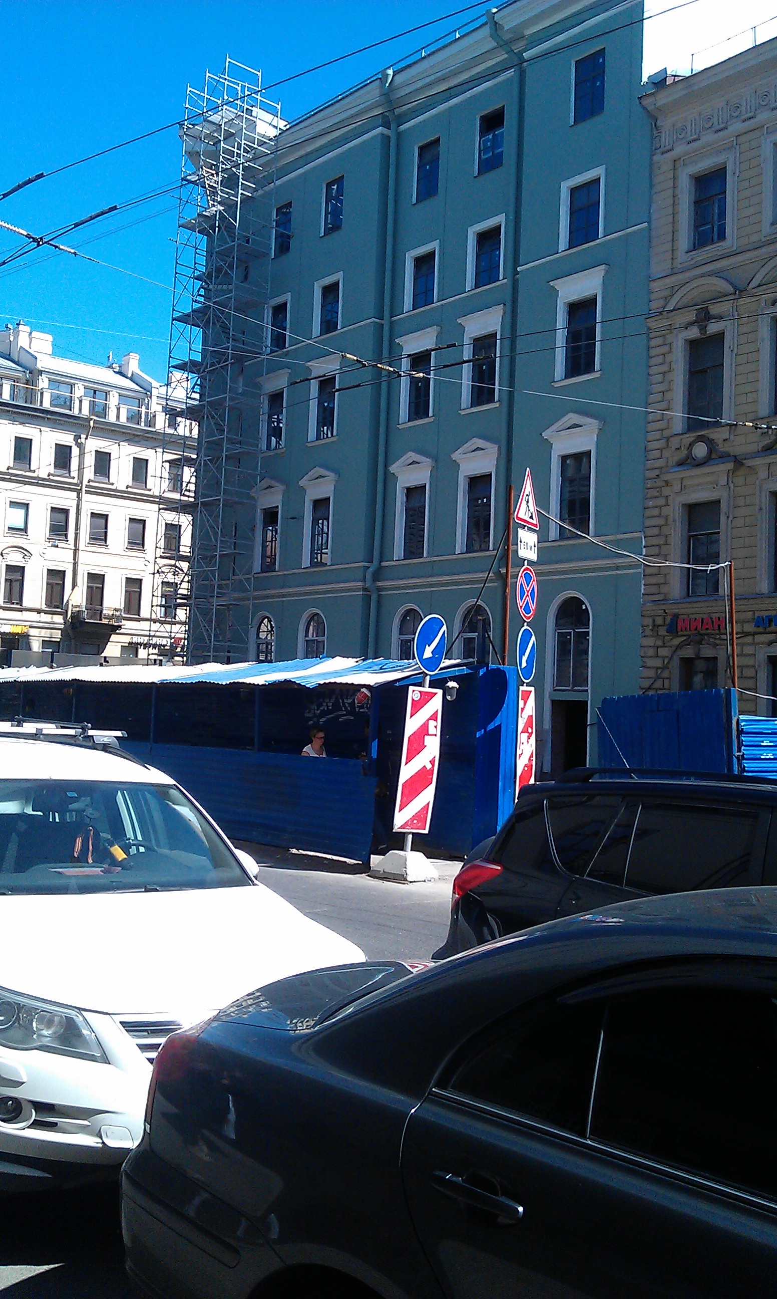 Еще до начала стройки вестибюля Адмиралтейской троллейбус еле протискивался по своей "выделенной" полосе за счет того, что задняя половина любой из припаркованных телег вылезает на проезжую часть. И сейчас после снятия ограждений будет так же, если не хуже.