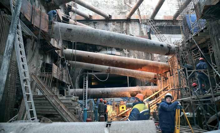 На стыке с тоннелем в НВУ- 463 (оси 1-1ʹ) работают бетонщики Управления-15. О ходе работ на этом сложном участке рассказал руководитель проекта СМУ №13 Геннадий Андреев:
