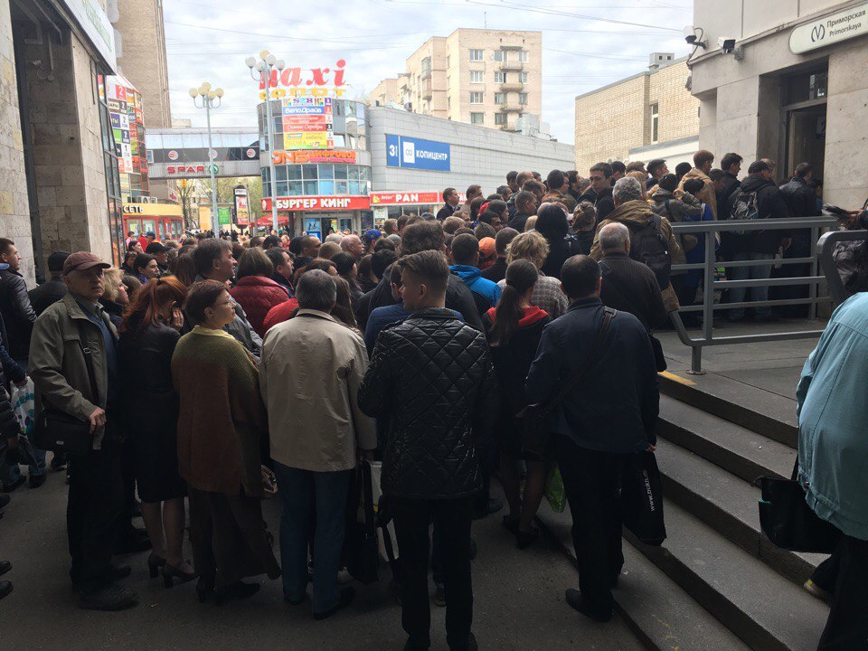 Утром в 11:28 ст. Приморская была закрыта на вход из-за остановки единственного работающего эскалатора.