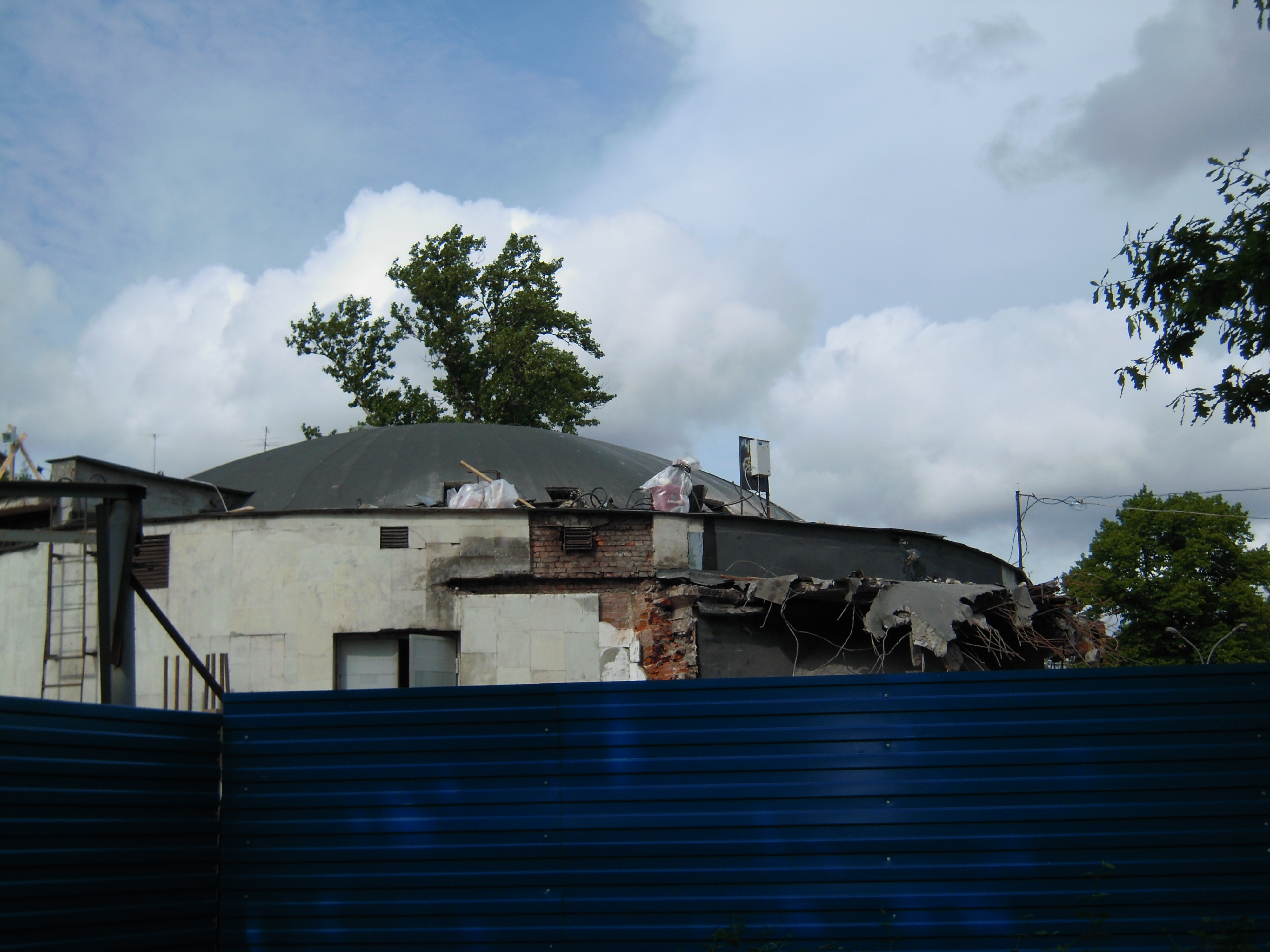 Начала разборки купола особо не заметил, кроме небольшого куска с заднего двора. Там же были открыты ворота, на вопрос "Успеете к декабрю открыть" мужик злобно ответил "Конечно успеем, мы же для этого и работаем" и закрыл задние ворота =)