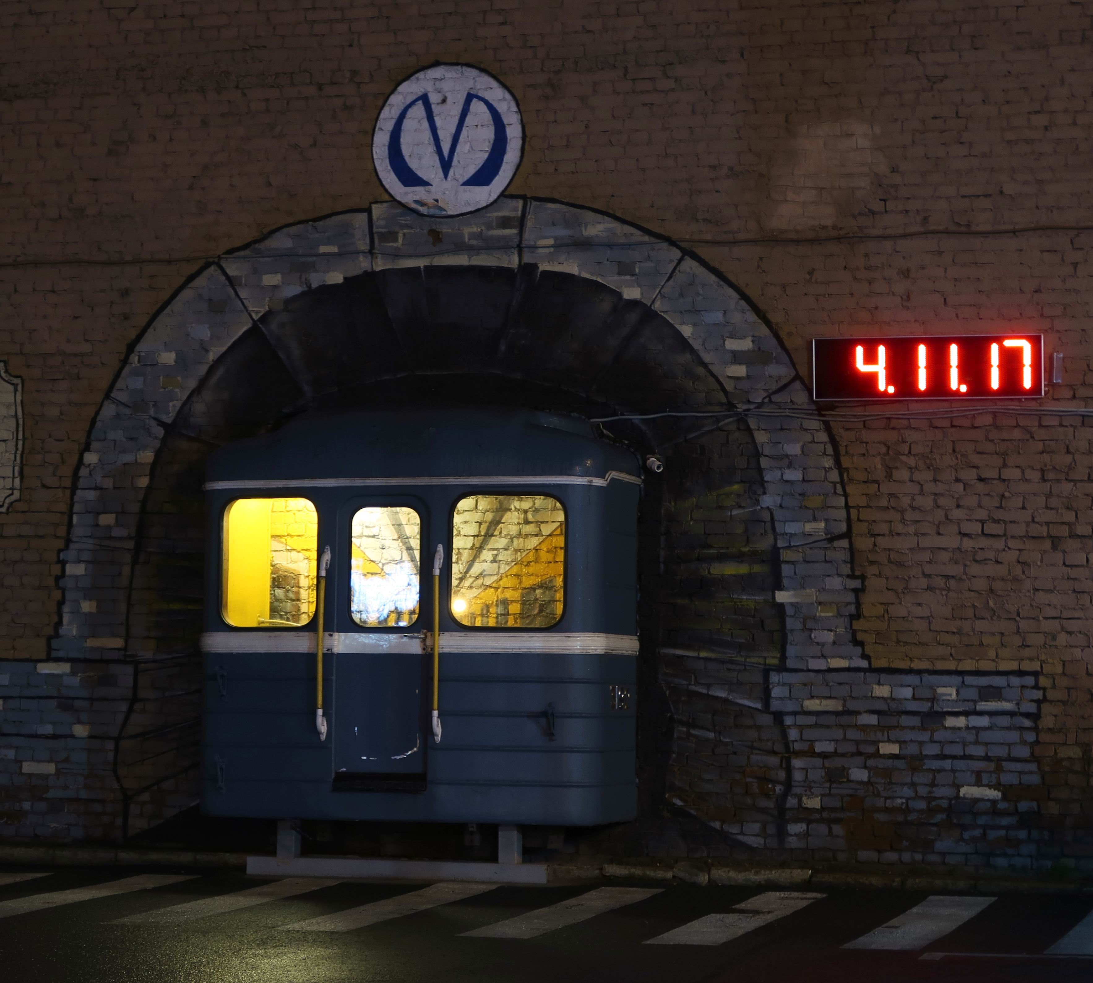 не в метро, но нарисованные внутренности как продолжение отрезанной головы промежуточного вагона, видимо Е. Вопрос где нарисовано?