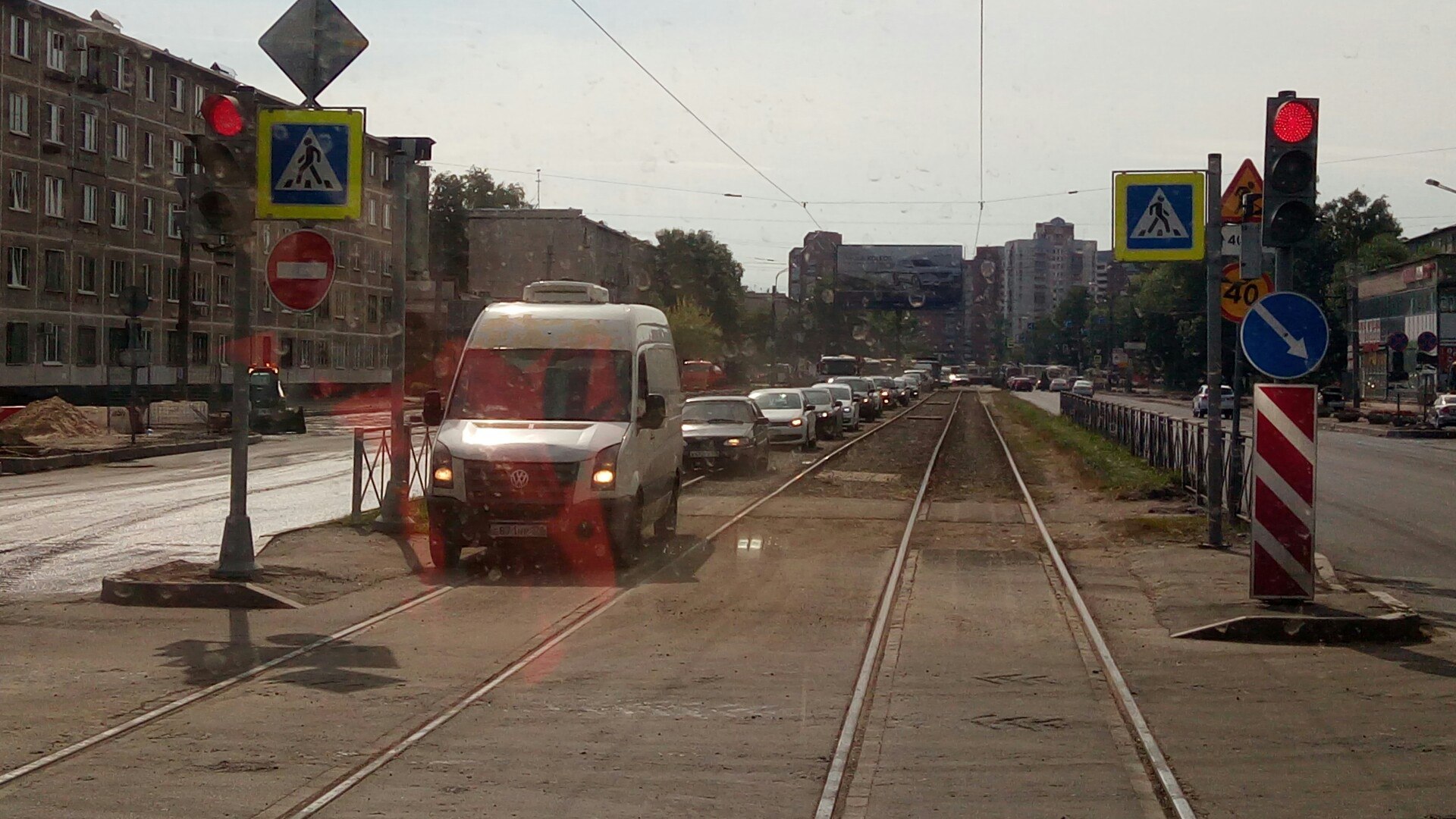 Именно. Дальневосточный проспект перекрыт, но АУ массово прутся по газону с путями. Трамваям не проехать. ГИБДД приезжать отказались (!!!) мотивируя тем, что у них там шабаш завтра. Чтоб их ливнями завтра смыло, уродов.