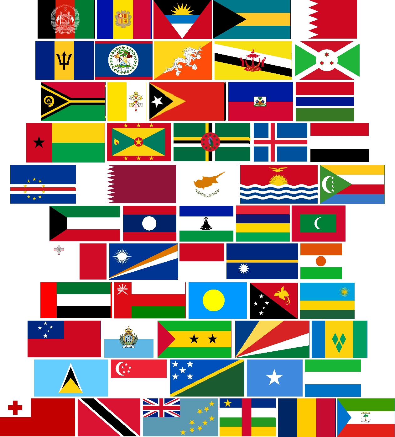 Не ответ. Большая часть - флаги островных государств или государств прибрежных в (суб)экваториальной зоне, а также малых государств. Кроме того Афганистан, Исландия, Лаос, Нигер, Лесото, Ватикан, ЦАР и конечно Бурунди.