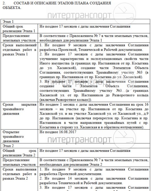 В ТКК подтвердили, что письмо чиновникам направляли. При этом никакой драмы в произошедшем компания не видит. В конце концов первый этап работ, в соответствии с договором, должен быть выполнен через 17 месяцев после его подписания, т. е. крайний срок — как раз 30 октября. В эту очередь входит маршрут от «Ладожской» по проспекту Косыгина до Наставников, и дальше на юг до Хасанской. Далее должен последовать второй этап — по проспекту Наставников до временного съезда перед Ириновским. В перспективный третий этап включен сам Ириновский проспект, Рябовское шоссе и улица Потапова.
