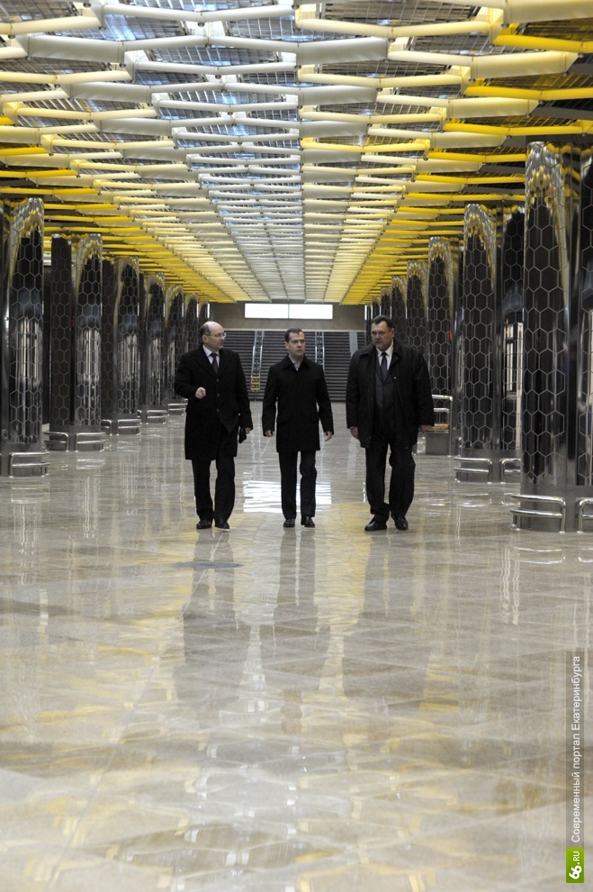 На церемонии открытия присутствовали также губернатор Александр Мишарин, глава Екатеринбурга Александр Якоб и Директор МУ «Управление заказчика по строительству метрополитена и подземных сооружений» Владимир Кагилев. Визит Медведева в метрополитен занял порядка десяти минут. Спустившись под землю, он сообщил: «Тут красиво и пахнет вкусно».