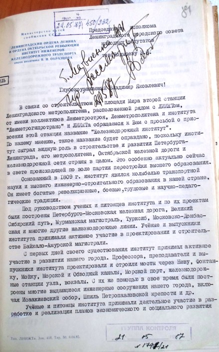 Попалось любопытное письмо за авторством главного инженера Ленинградской дирекции строящегося метрополитена В.Т. Соколовского сразу к двум вице-губернаторам заместителям председателя Ленгорисполкома - А.А. Чистякову и Е.А. Гоголеву. Датируется оно 21 ноября 1972 года. Например, автор возражает против продления НВЛ от "Ломоносовской" на юг, считая более продуктивным вести на правый берег, с депо в районе ст.Нева и это был не единственный у него вопрос по трассировке будущих линий. И, что любопытно, он поддерживал идею заняться "в дальней перспективе"...глубоким вводом, причём ссылаясь на уже упоминавшуюся на форуме идею организации такового при проектировании первой очереди:
