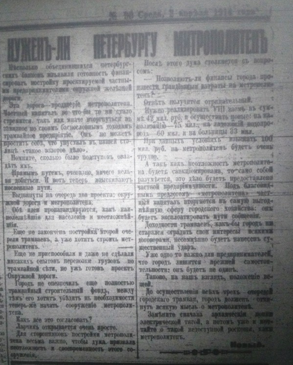 Из отдаленной предыстории, когда только ставился вопрос "А оно нам надо?". "Петербургская газета", 2 (15) апреля 1914 года