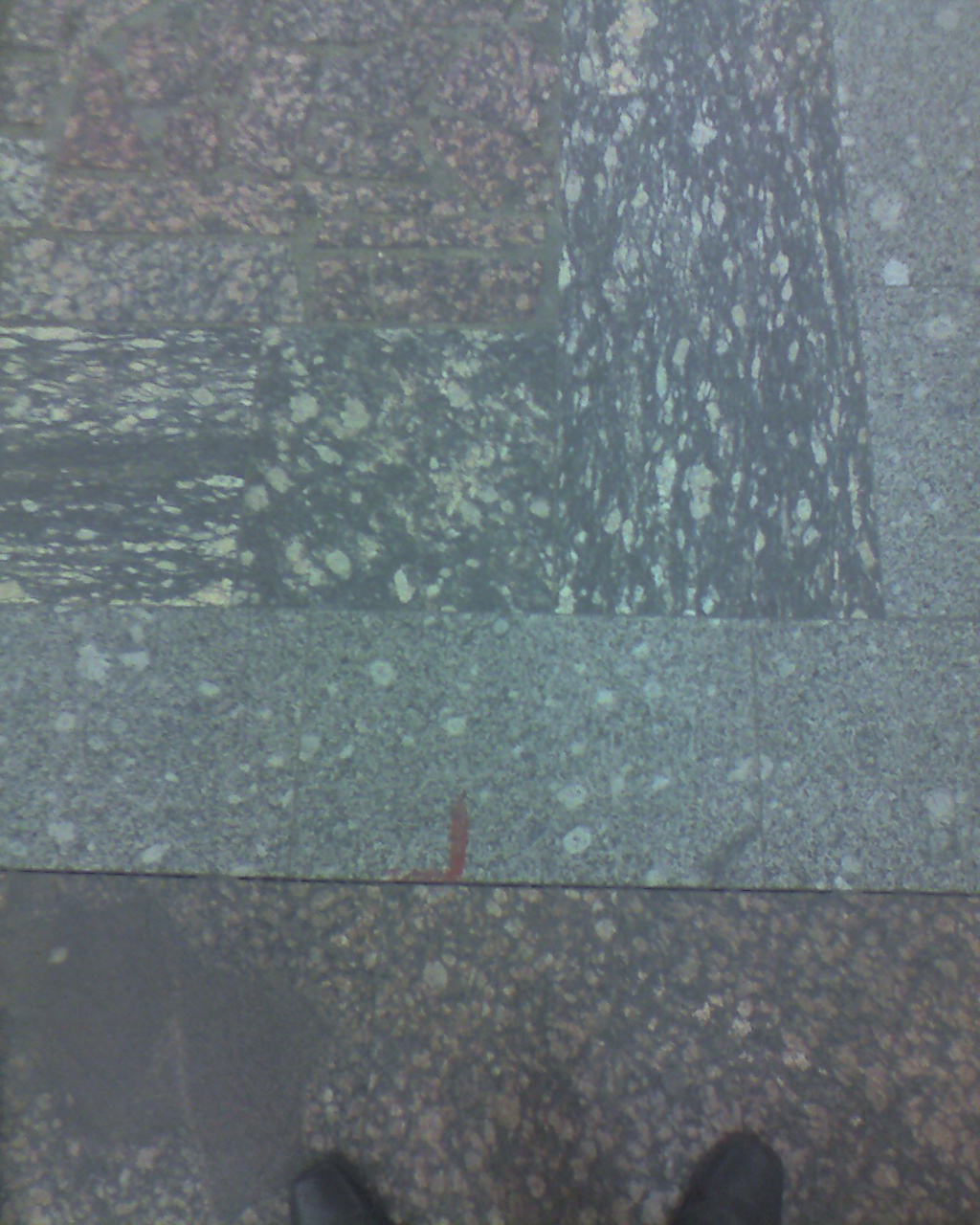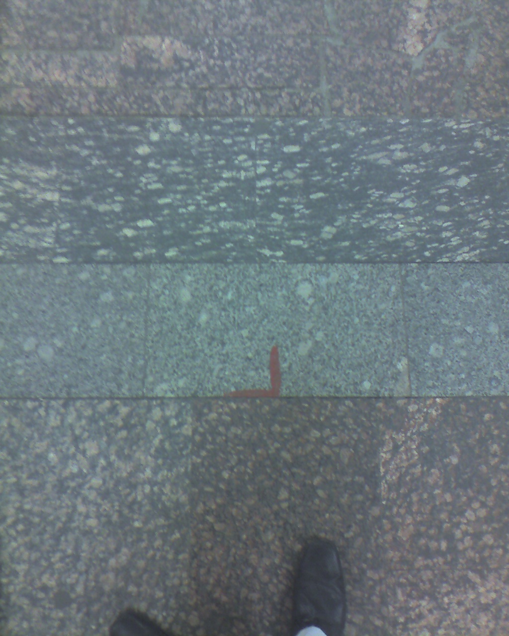С другого прямоугольника на полу, выложенного кусками гранита неправильной формы, убрали стойку с рекламой.