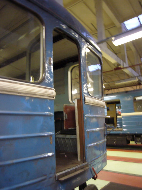 Дело было ночью, на бесканавке (10 или 11 не помню), просто дежурные выпили пару стаканов чая :) , вроде даже плита была смещена. Т.к в Выборгском задняя стена депо из бетонных плит поэтому сильная деформация кузова вагона, его пытались выправить но не получилось.