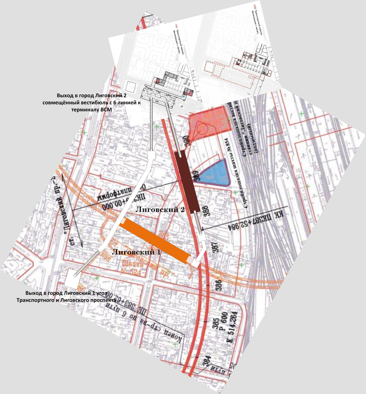 По словам Соколова, в АБК разместят помещения общепита, офисов, а также музей метрополитена. Но если говорить о транспортной, подземной части, то пешеходный переход, к которому подключат здание эскалатором, будет интегрирован с проектируемым вокзалом Высокоскоростной железнодорожной магистрали Москва — Петербург. Переход расположат на территории между Лиговским проспектом и путями Октябрьской железной дороги — на месте сносимых построек внутри квартала под будущей привокзальной площадью.