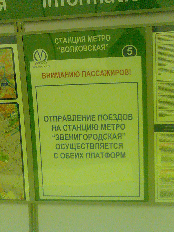 дурацкий цвет панелей... я не против пластика, даже скорее за - когда речь идет не о центральных станциях... но этот светло-сиреневый "йогурт" - это пародия... названия станции через каждые полметра - это тоже бред... не нужна нам тут такая "Европа"... впрочем, новая система указателей, мне подумалось, вполне может прижиться - но, надеюсь, только на новых станциях... нехай ставят такие на Бухарестской, Международной... кстати, во второй мой заезд на станцию (где-то в шестом часу) меняли указатели "Нет посадки" в ЦЗ на вторую Звенигородскую... в целом, проект унылый - банальный, обыденный, заурядный...