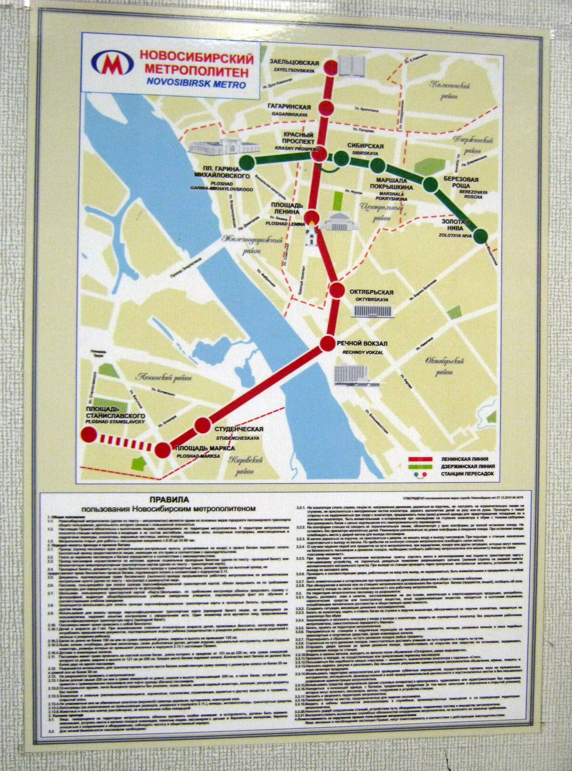 Побывал недавно в Новосибирске и прокатился в метро. Метро отличное, чистое, красивое, востребованное. Пассажиропоток значительный, даже в позднее время суток, причем очень много людей совершают поездки в том числе и на одну остановку. Подвижной состав в приемлемом состоянии, есть пара новых поездов. С навигацией проблем нет, персонал довольно вежливый. Освещение на всех станциях работает в полном объеме. Плохо то, что очень много рекламы и в наличии протечки на некоторых подуличных входах. Вечером закрывается половина выходов со станций и пешеходный переход между линиями (который, к слову, неудобный - длинный, извилистый и невостребованный среди пассажиров). На станциях предупреждают мужским голосом перед прибытием поезда. Интервалы днем - около 6 минут, вечером - около 9 минут (только на 1 линии, на 2 остаются прежние интервалы). Интересно, что большое количество входов в метро встроены в различные здания и торговые комплексы. В общем, метрополитен Новосибирска довольно живенький, не уступает Московскому и Питерскому, так что по праву может считаться третьим метрополитеном в стране! Рекомендую к посещению!