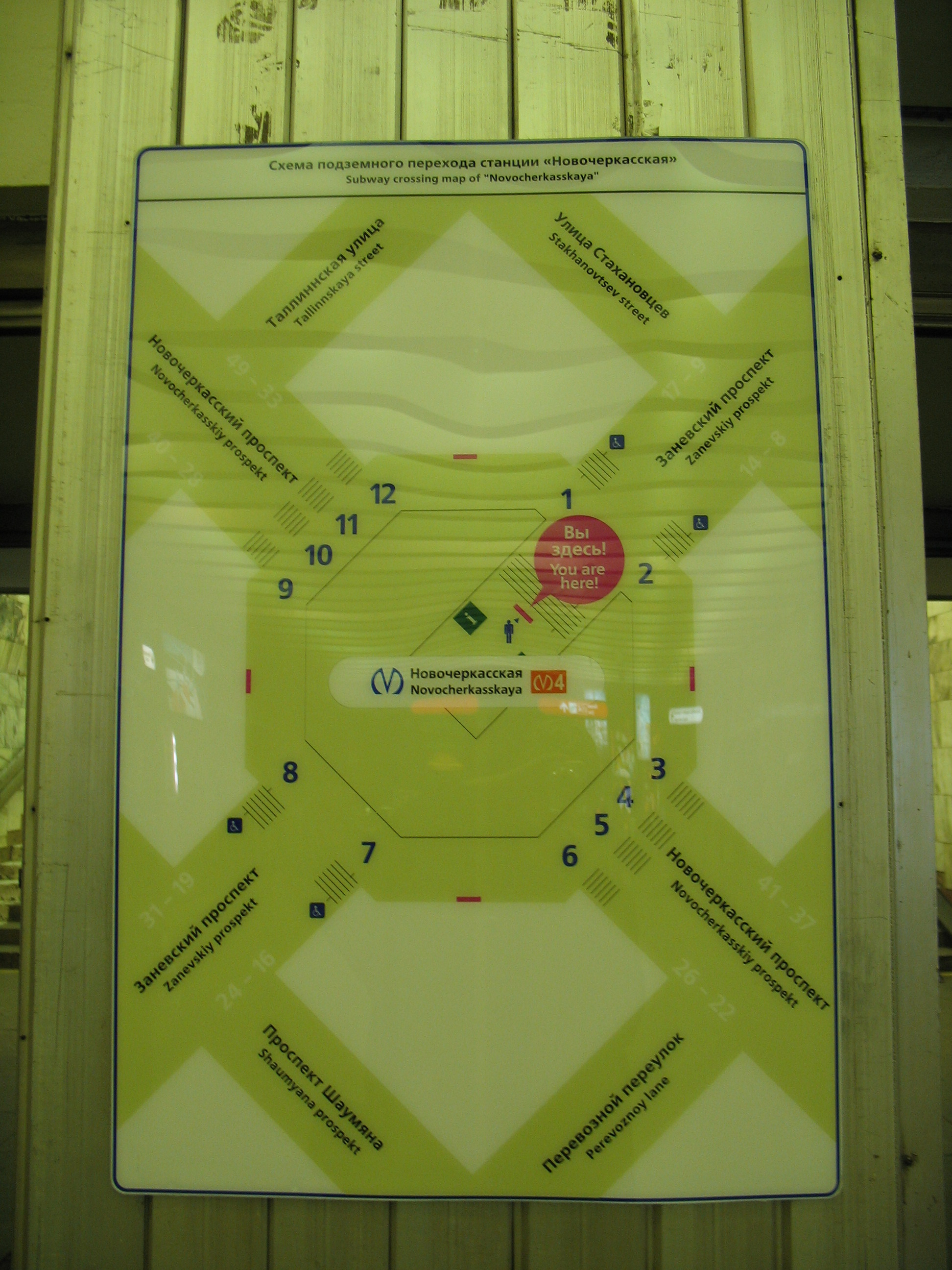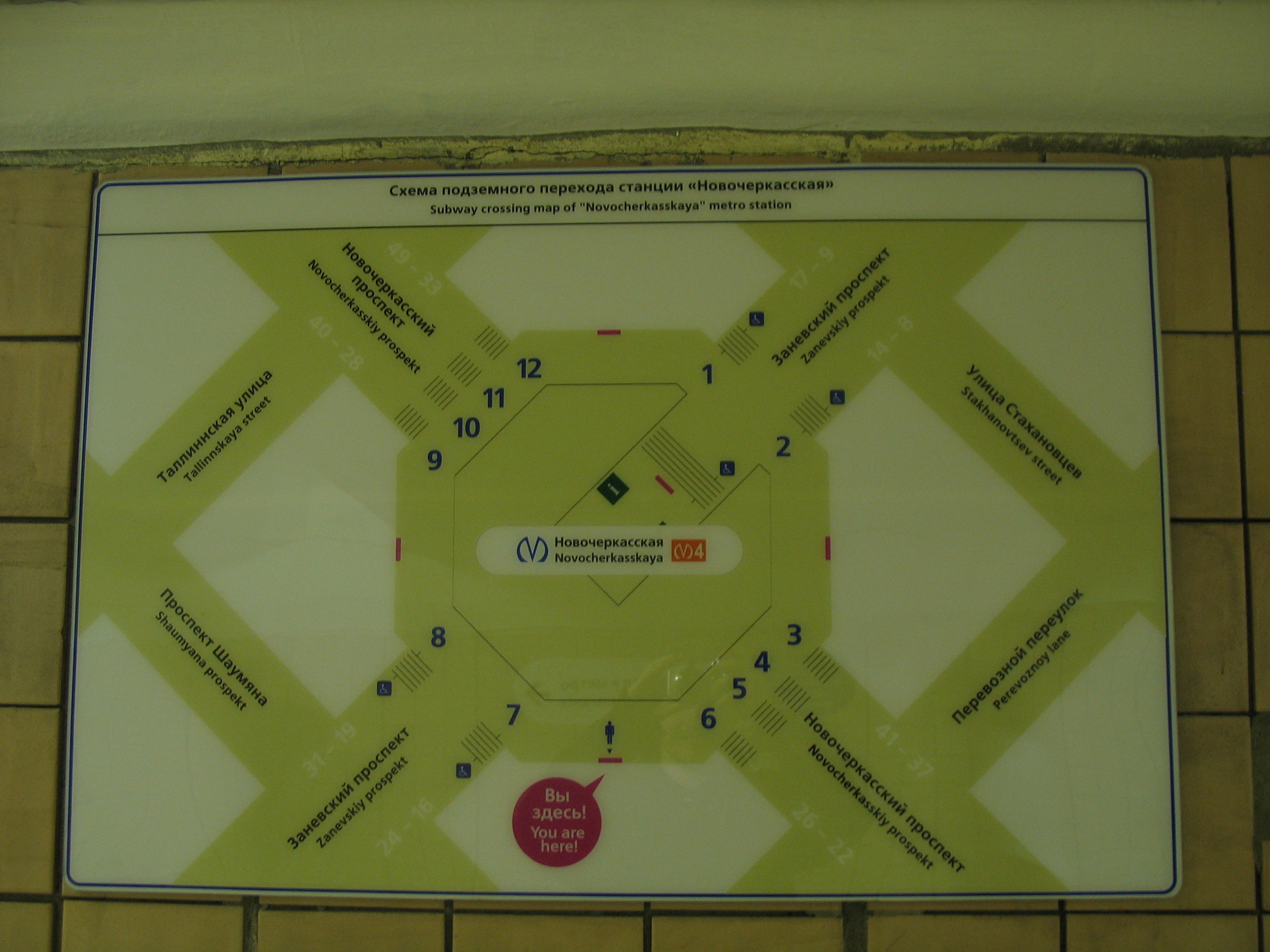 Например, мне нужен Новочеркасский проспект, дом 62. Путём решения нехитрой головоломки я выясню, что мне требуется выход №9.