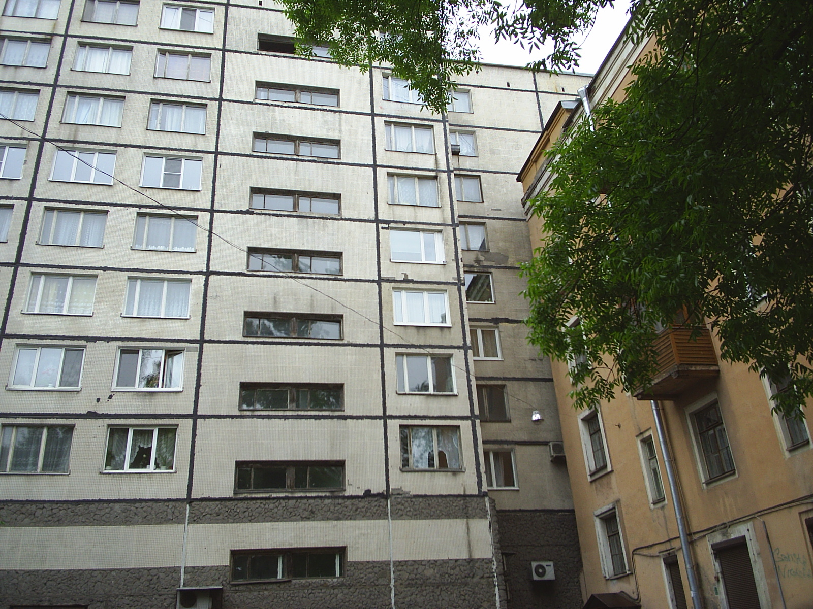 хоть и имеет нормальные окна парадных, но вот со стороны улицы имеет необычный вид...