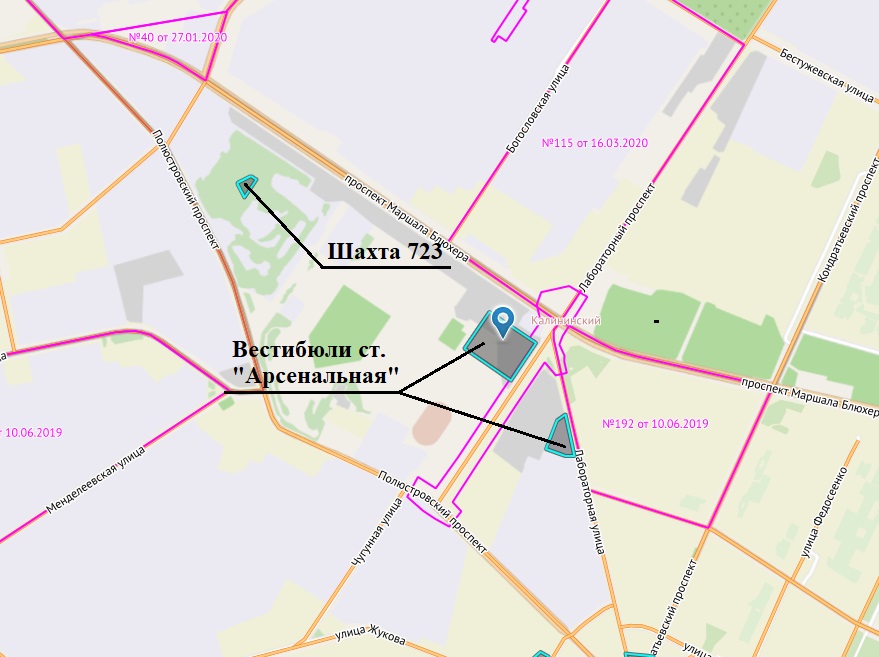 Только участки под западный вестибюль ст. "Арсенальная" и площадку шахты 723 утверждены постановлением Правительства Санкт-Петербурга от 24.02.2015 г. №215.