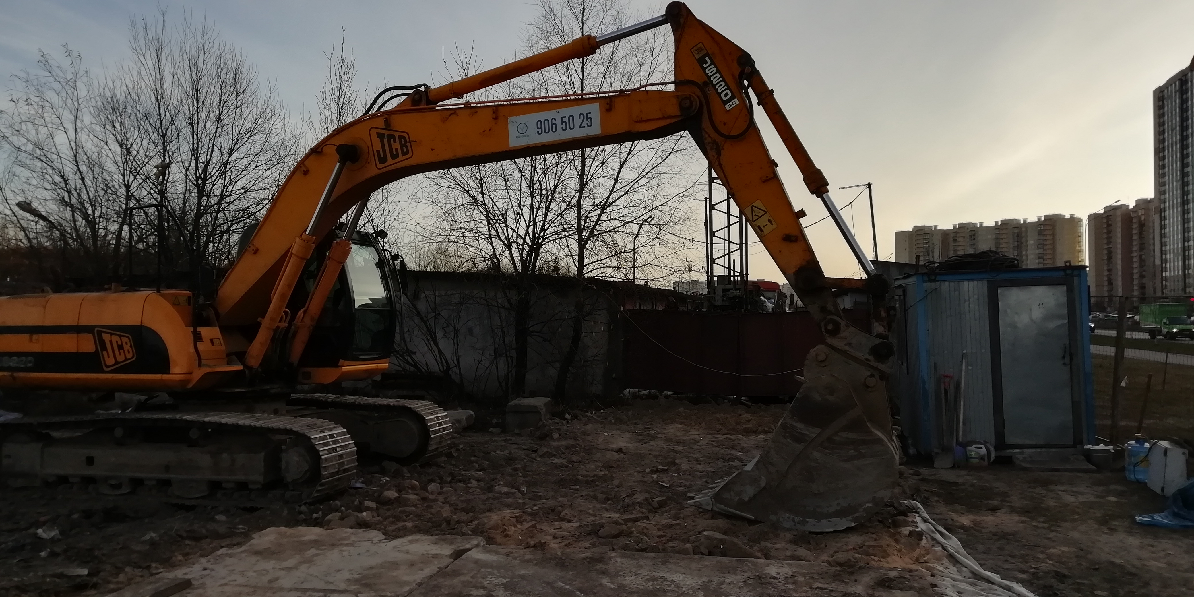Завезли бытовку, дорожные плиты, гусеничный экскаватор JCB.