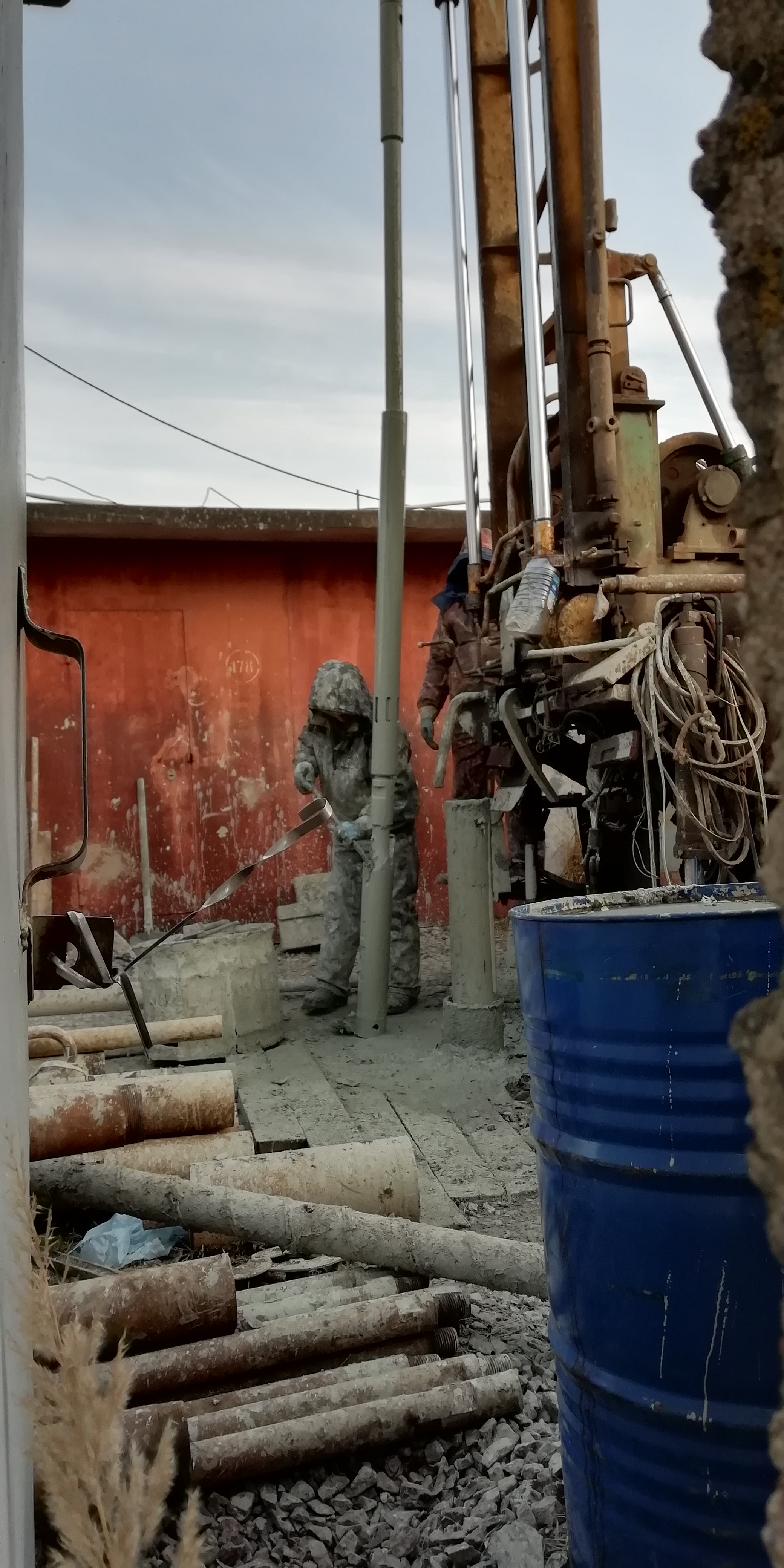 В рядах гаражей в двух местах появились буровые установки на КАМАЗах.