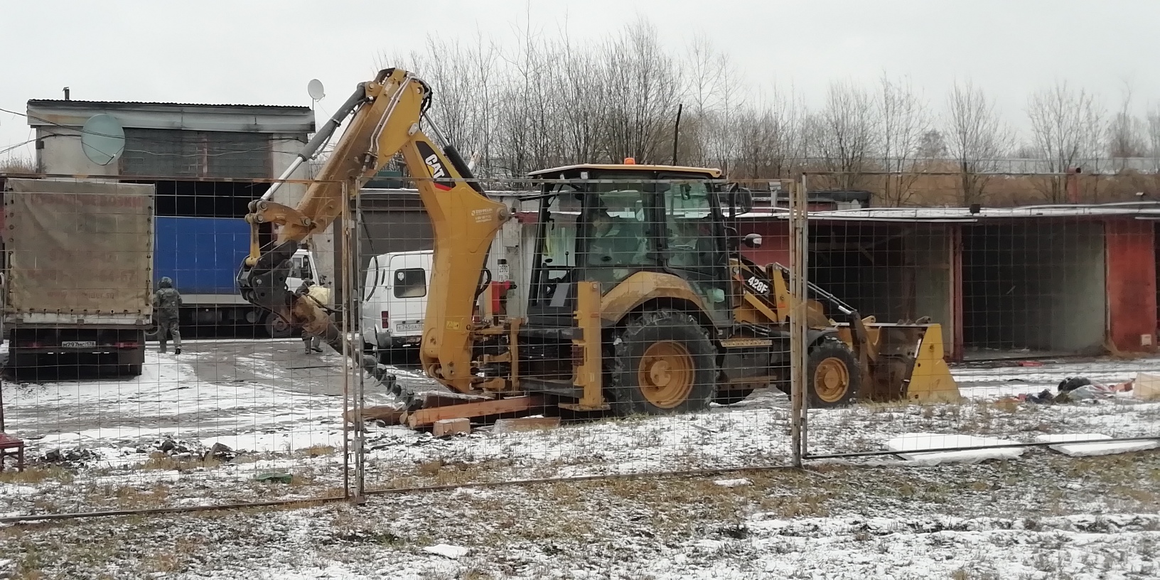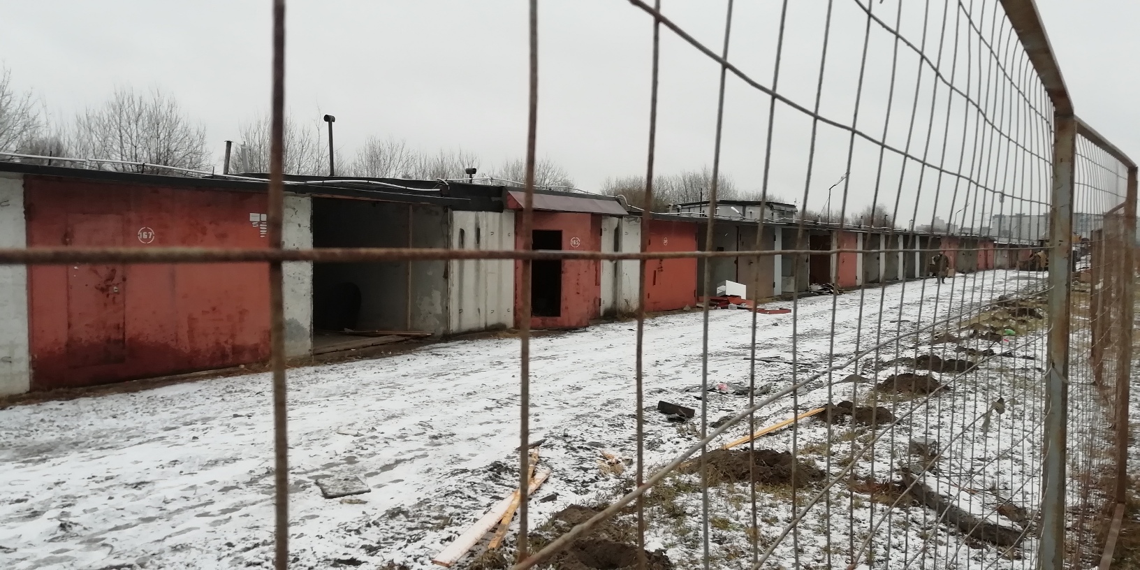 На территории гаражей видна мачта буровой установки (видимо берут пробы грунтов)